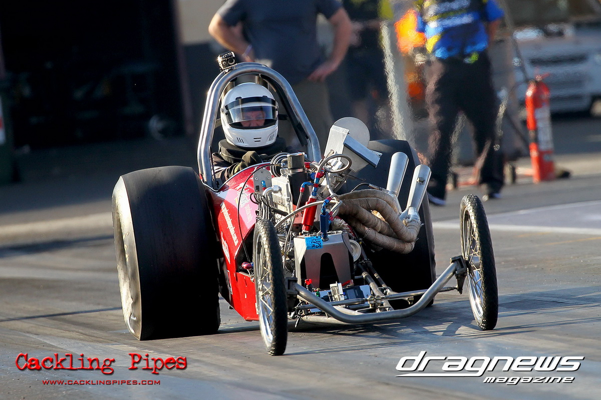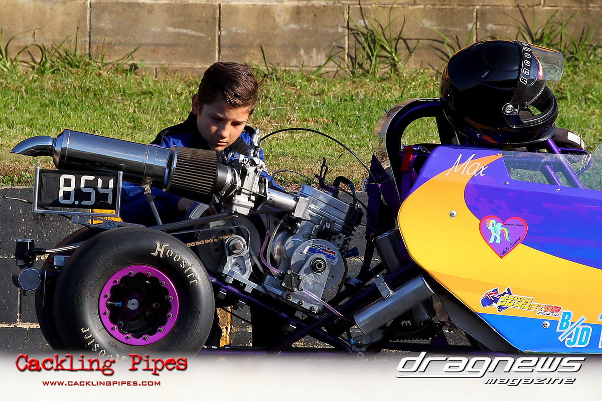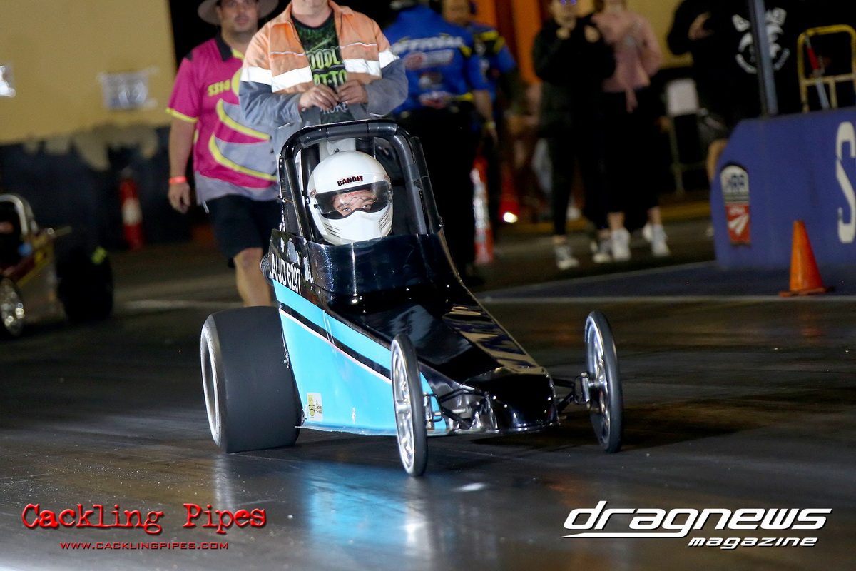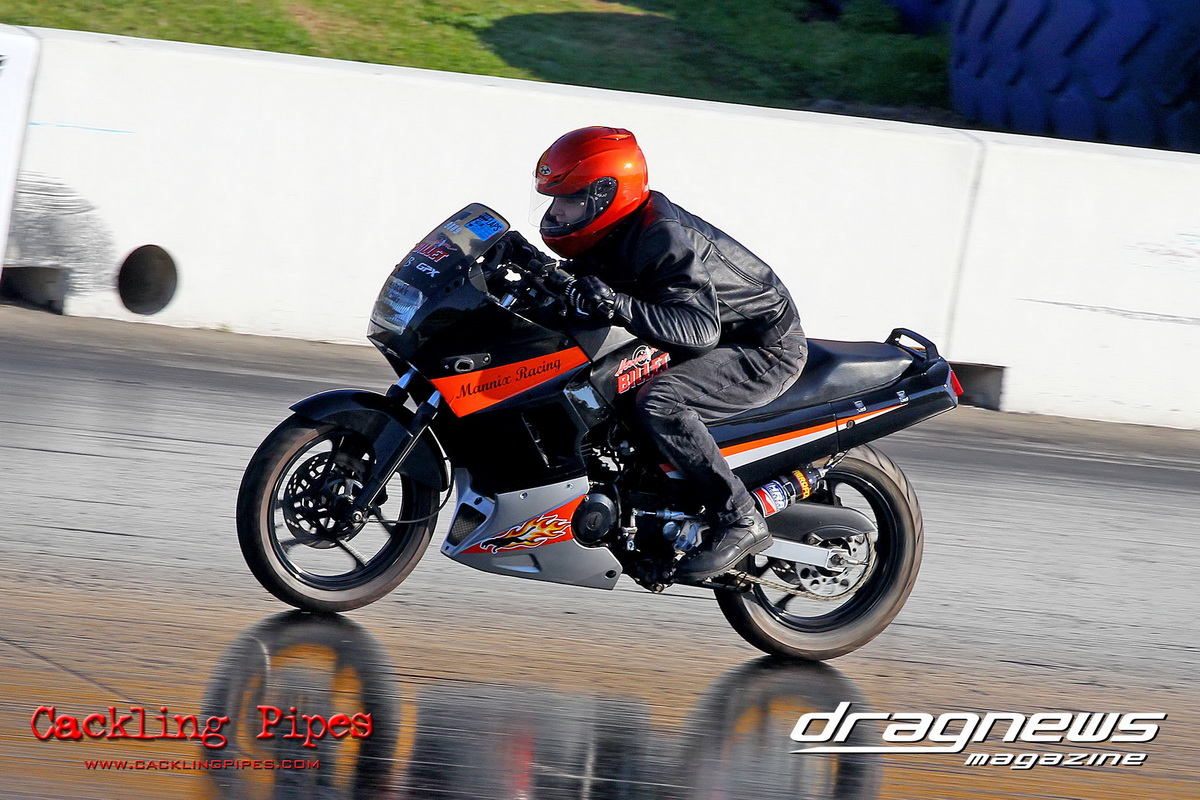 A first round upset saw championship leader Jim Denaro on the trailer at the hands of Jason Field, who then continued on to the final with his Telstar to face Marco Tolomeo in his potent XY. Tolomeo had to pedal the XY just past the sixty in the final and that was all the advantage Field needed to hang on to the win with a 9.16 on a 9.00 at the finish.