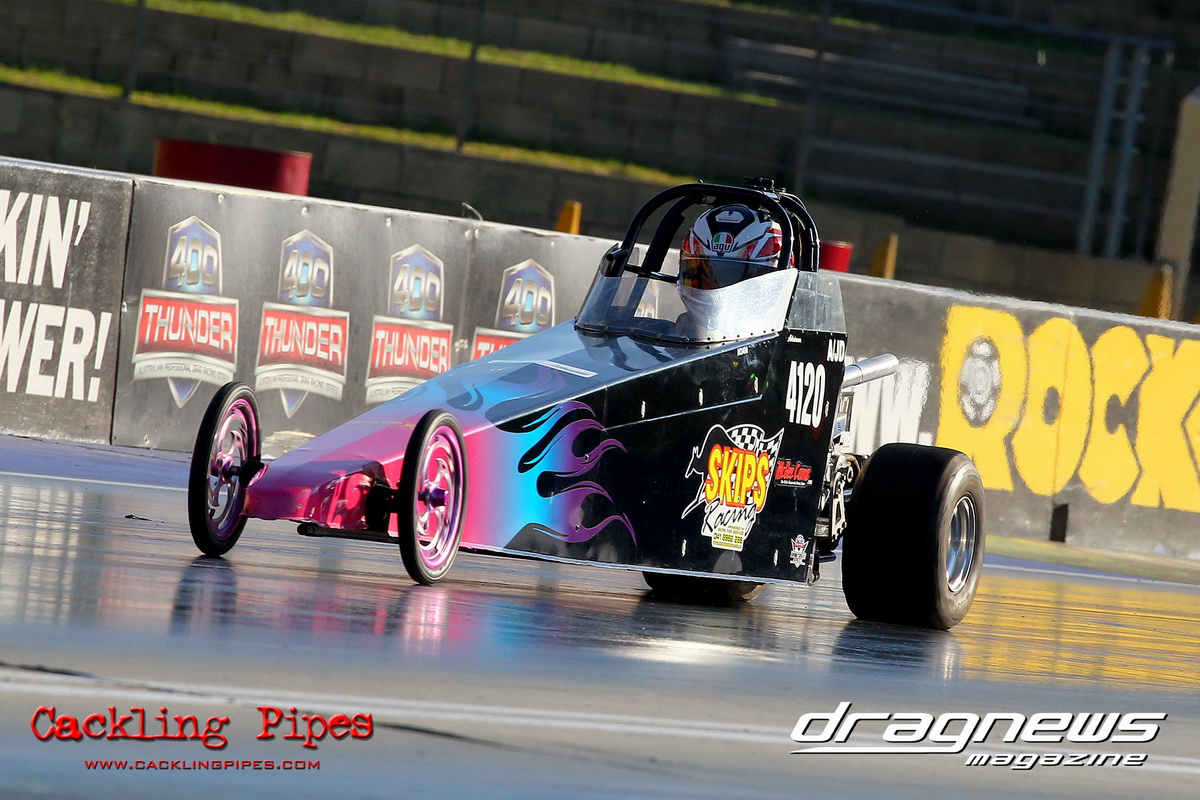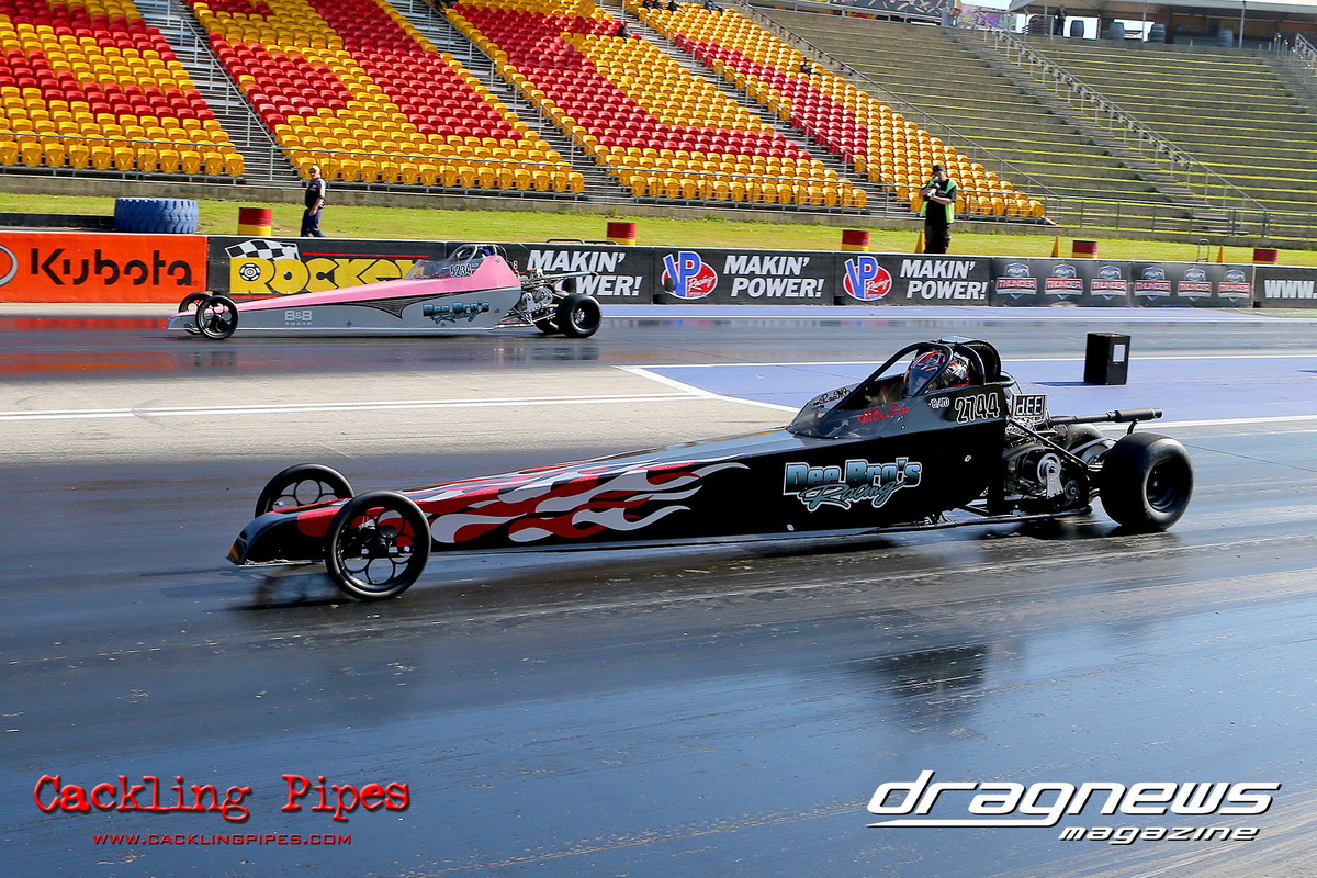 The current 400 Thunder Top Sportsman champion Steve Fowler dropped into the event for their first showing of the season and proceeded to clean house by reaching at winning the final against back to back finalist Jono Roylance. Fowler gave up a little on the tree but the GXP hit the stripe with a 6.871 on a 6.87 dial in to a breaking out Roylance. For Roylance though, he will head into the break with a 20 point championship lead.