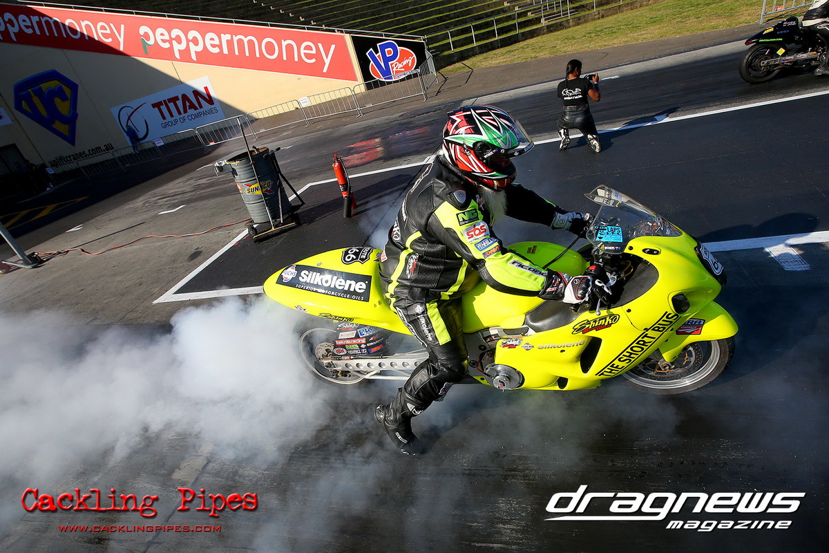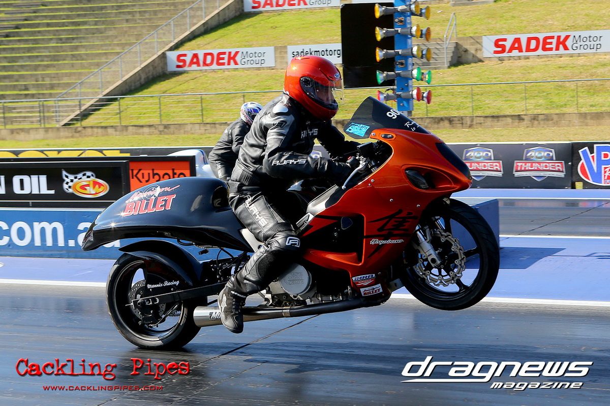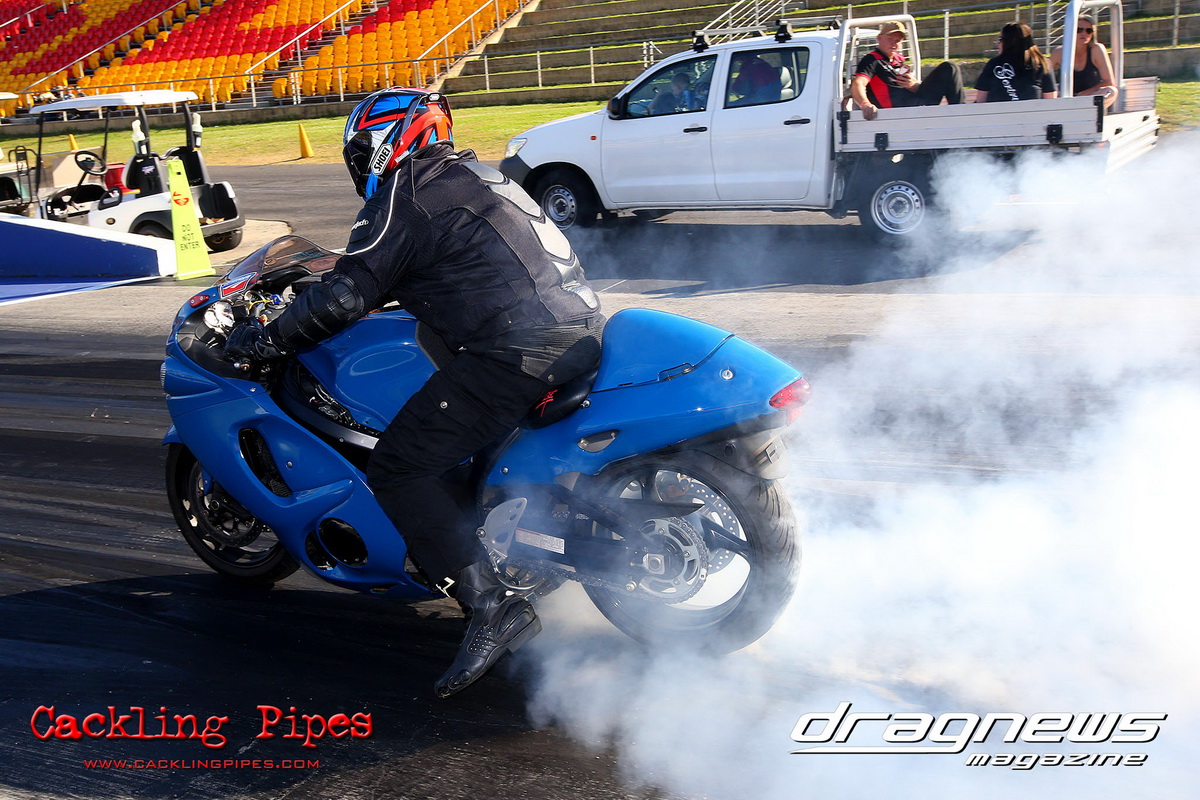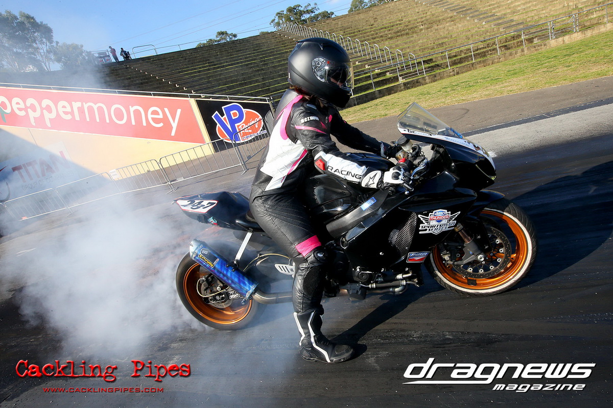 Extreme Bike was an exhibition that ran heads up over three rounds. Both Deanne Azzopardi and Darren Delaney knocked up three wins from three races, the winner going to the quicker ET that was Delaney with a 8.13 over Azzopardi’s 8.81. Unfortunately Azzopardi also fell in the third round and was transported to hospital a bit beat up and broken, but will be back, and we wish Deanne all the best and a quick recovery.