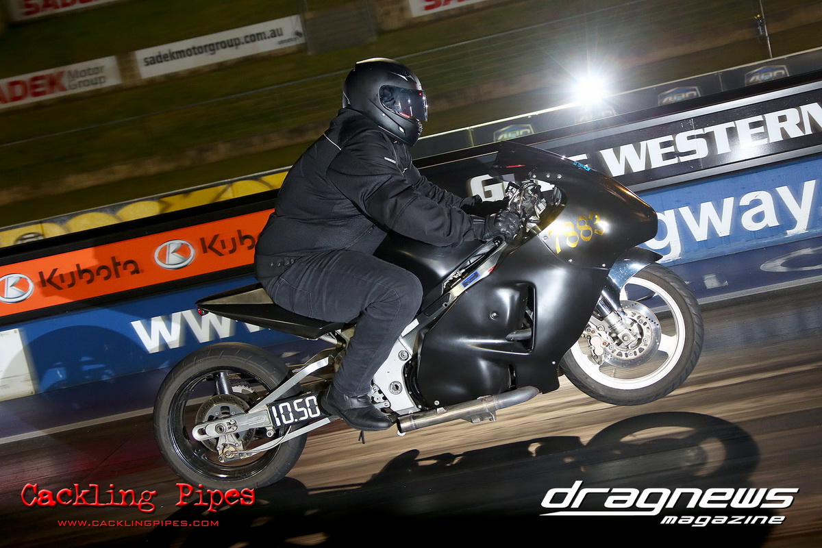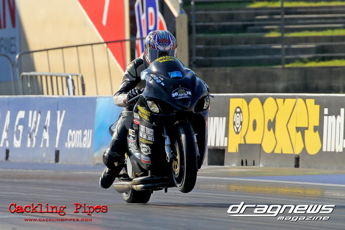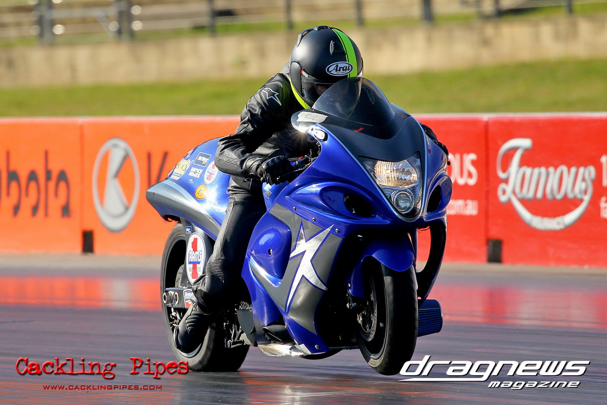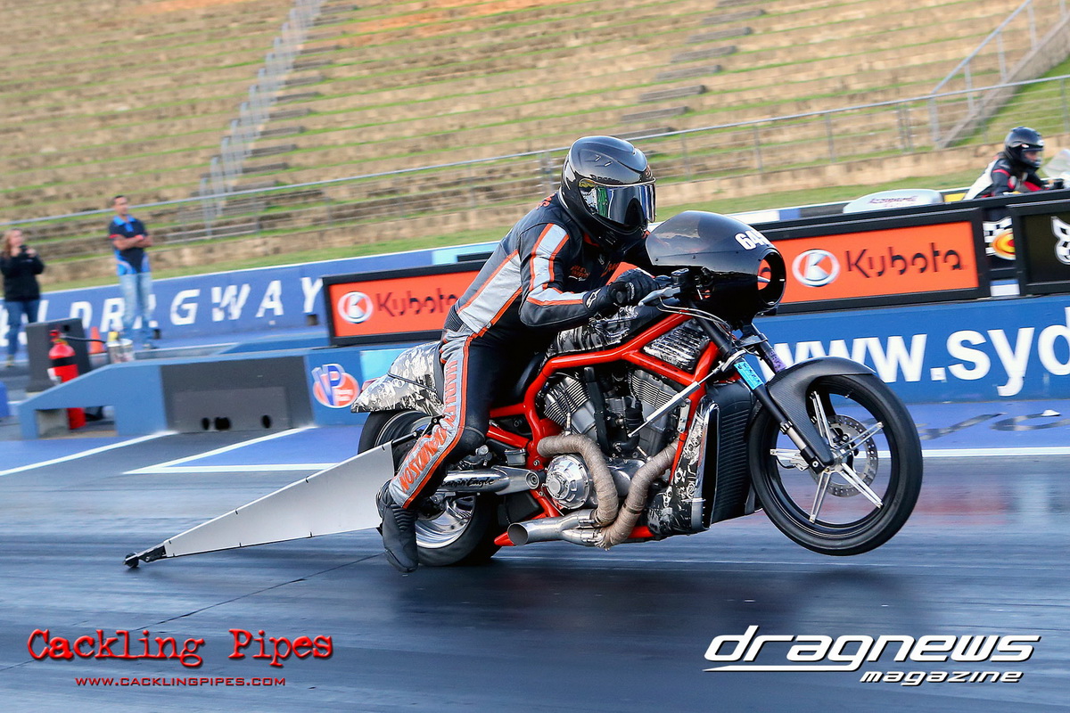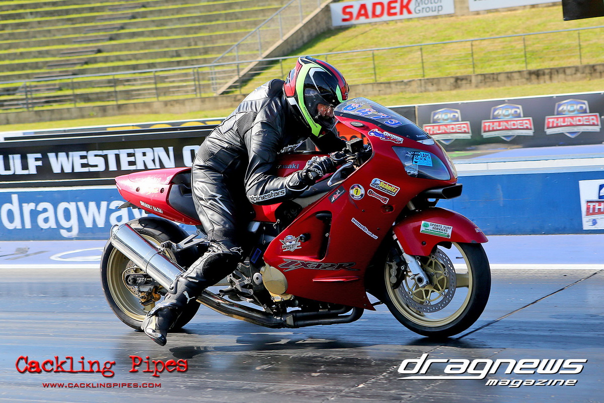 Extreme Bike was an exhibition that ran heads up over three rounds. Both Deanne Azzopardi and Darren Delaney knocked up three wins from three races, the winner going to the quicker ET that was Delaney with a 8.13 over Azzopardi’s 8.81. Unfortunately Azzopardi also fell in the third round and was transported to hospital a bit beat up and broken, but will be back, and we wish Deanne all the best and a quick recovery.