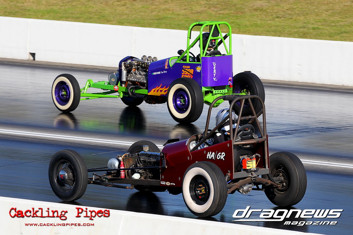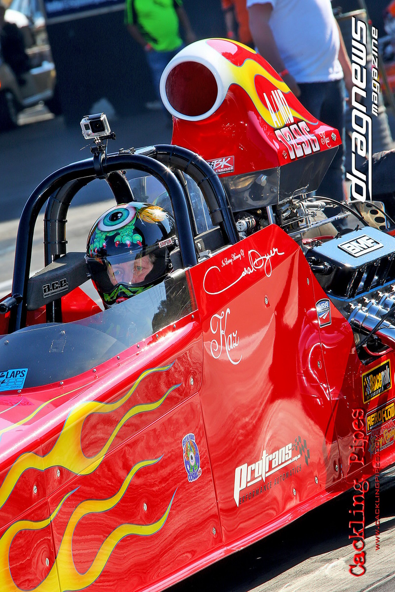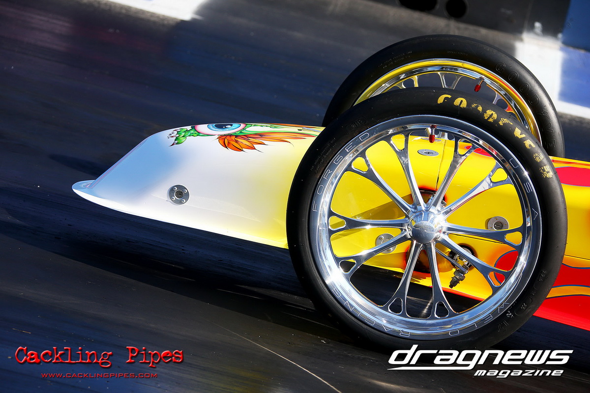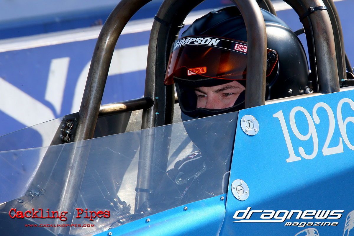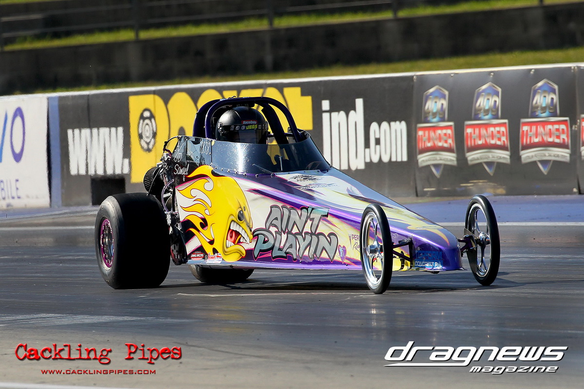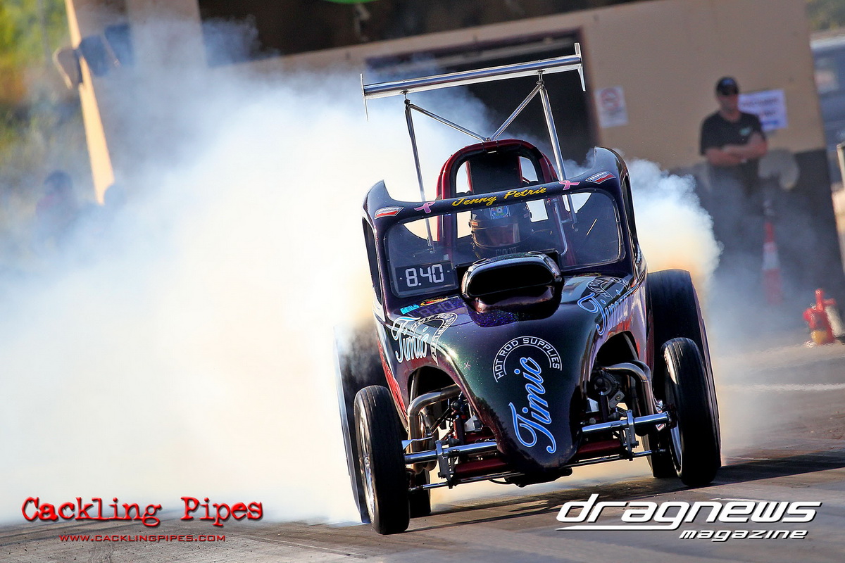 In the Junior Dragster final, both Ryan Pettiford and James Hazzard took shots at the tree in a heads up 8.02 dial in race, and both came up red. Pettiford’s -.010 was the least and the third generation racer earned his first ever win. But Hazzard still leads the championship, 20 points ahead of Nicholas Polito.