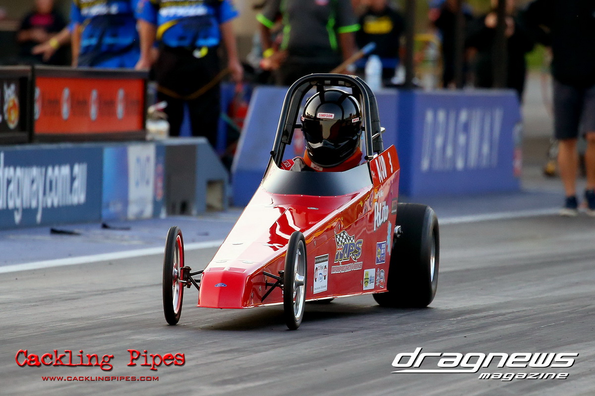 The super tough Modified bracket was a all front engine affair in the final with Graham Blake taking on Matthew Welch, with the winner leading the championship into the break. Welch cut a terrific .010 reaction time and wasn’t headed with a 9.213 on a 9.10 to Blake’s hard-charging 7.25 on a 7.21, it was Welch’s first win since moving to Modified from the bike classes.