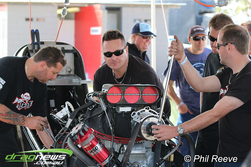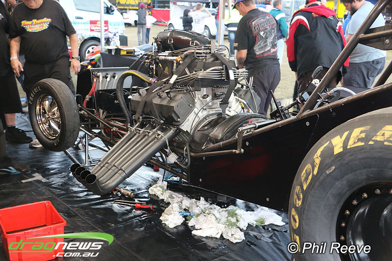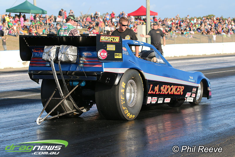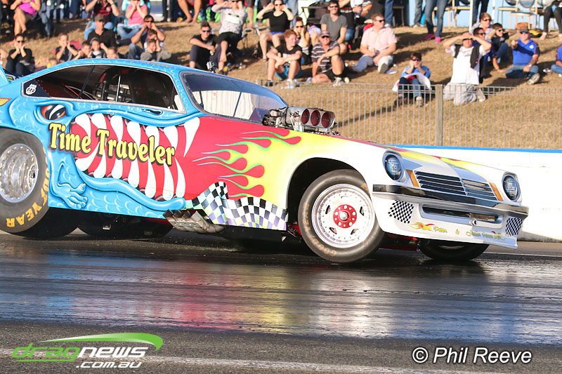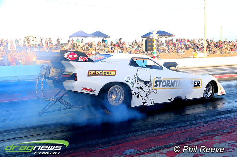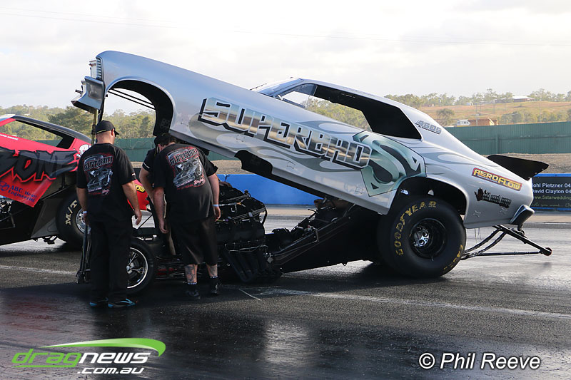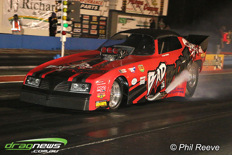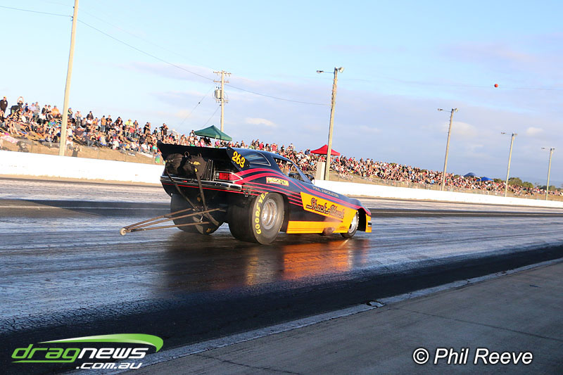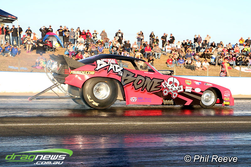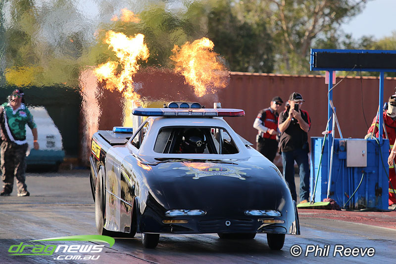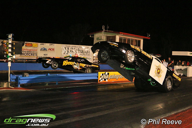 The Aeroflow Outlaw Nitro Funny Car roadshow pulled into Palmyra Dragway in North Queensland for another flame throwing display from twelve nitro burners.