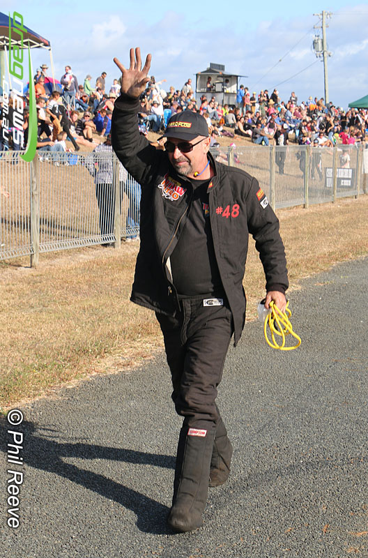 Round one carnage saw the Time Traveller smash an engine off the line and Nathan Peirano perform a spectacular save to keep the car off the wall while skating around on oil soaked slicks.