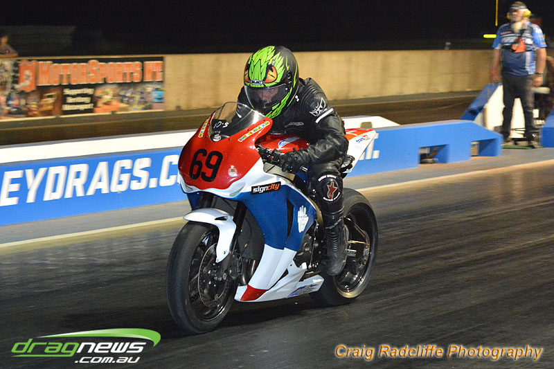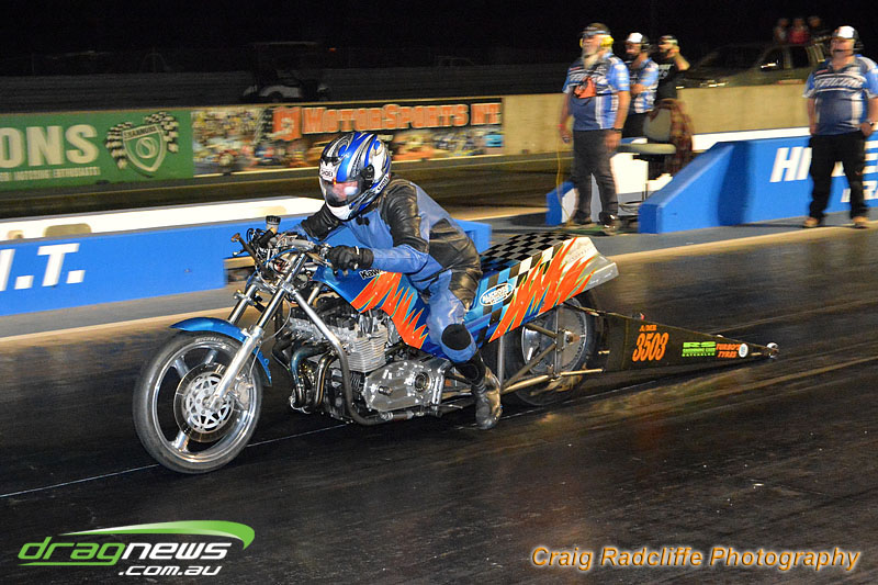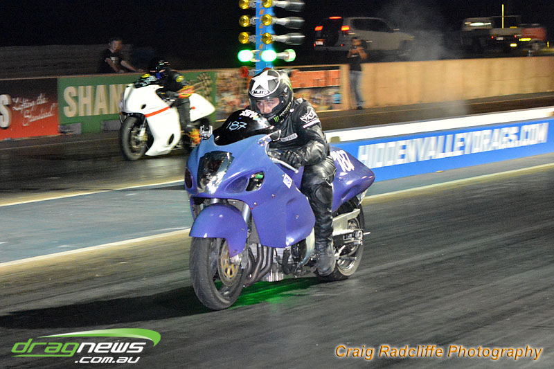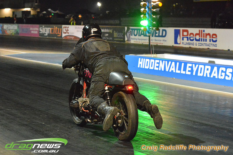 Tattingham brothers were on fire this opening meeting with Dave Tattingham taking out the street bike finals over Josh Schuit with a 10.9 on a 10.7 dial-in. While Mark Tattingham took the win in Modified bike over Colin Sainsbury with a very smooth 9.7 on a 9.6 dial-in.