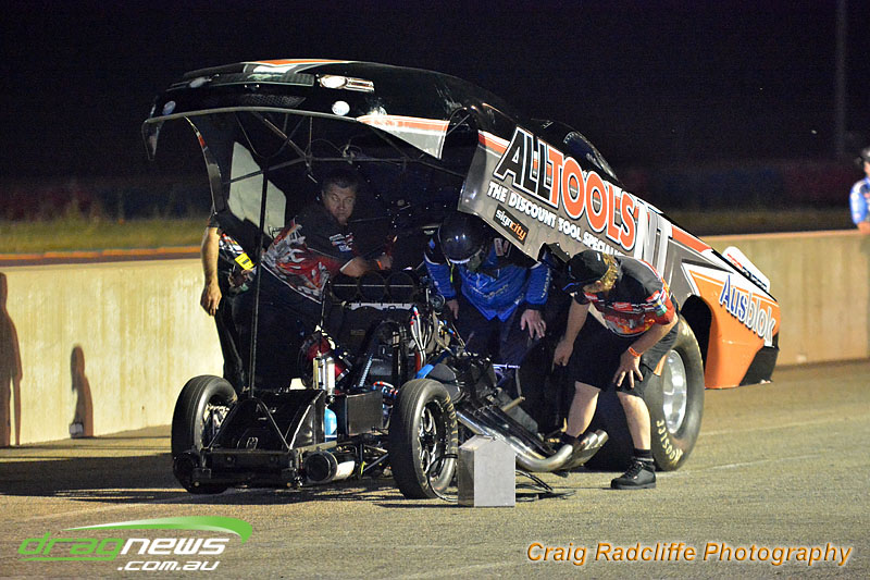 The night was bittersweet for Todd Knight after crossing the finish line a tyre failed on his Pontiac at over a 150mph resulting in significant damage to his car ending his season.