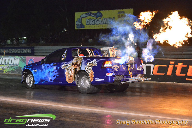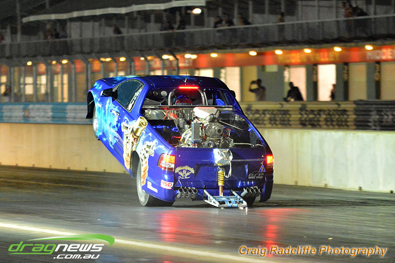 Super sedan standoff between mates Chris Parris and Steven Scheurs saw them go old school racing tossing a coin for lane choice before Chris Parris took the win from favourite Steven Scheurs with a 9.63 on a 9.58 dial-in, although Scheurs’s 9.09 on a 9.07 dial-in made for nail biting finish.