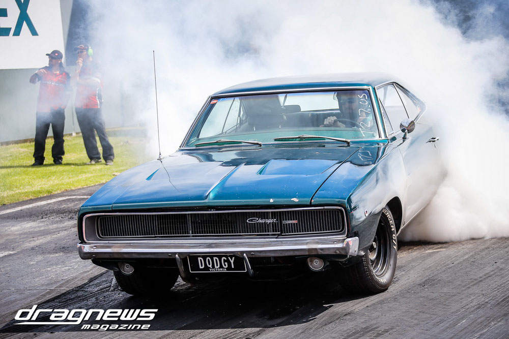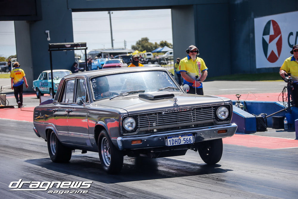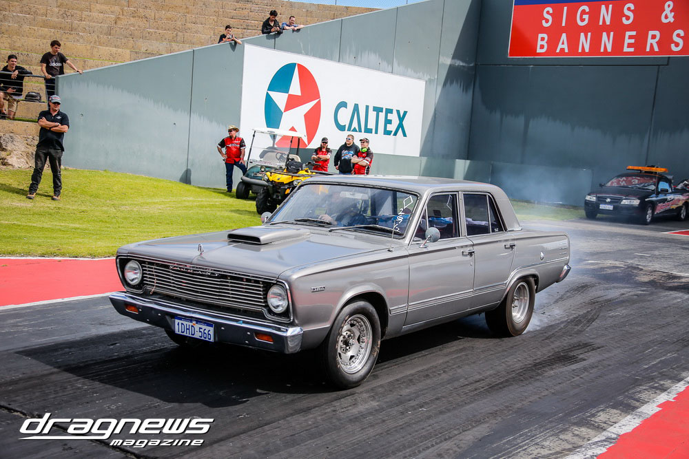 And finally in Oz Muscle Jake Rebrovic and Stephen Hotchkin pushed each others Valiants so hard both racers broke out. Rebrovic’s 10.994 on a 11.08 dial in was by the least amount and was handed the winner’s trophy.