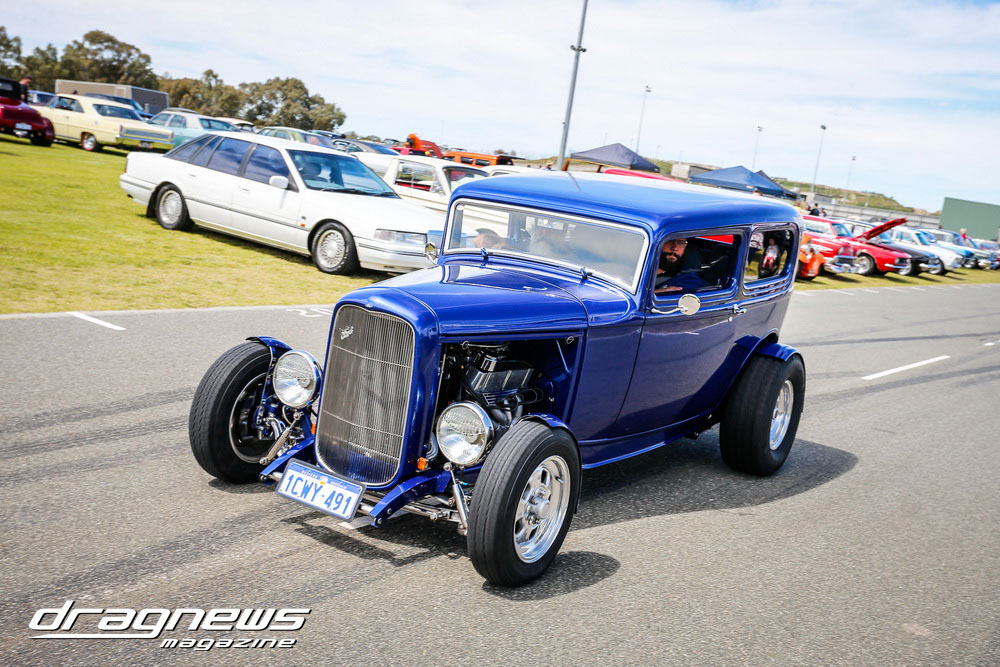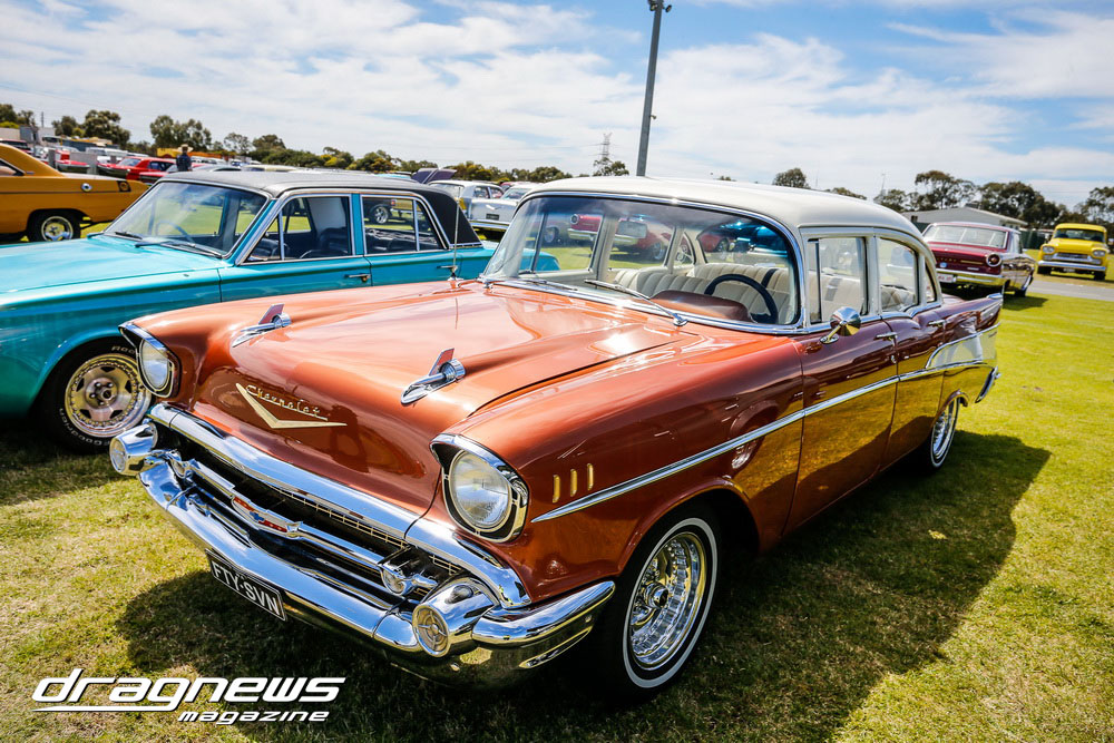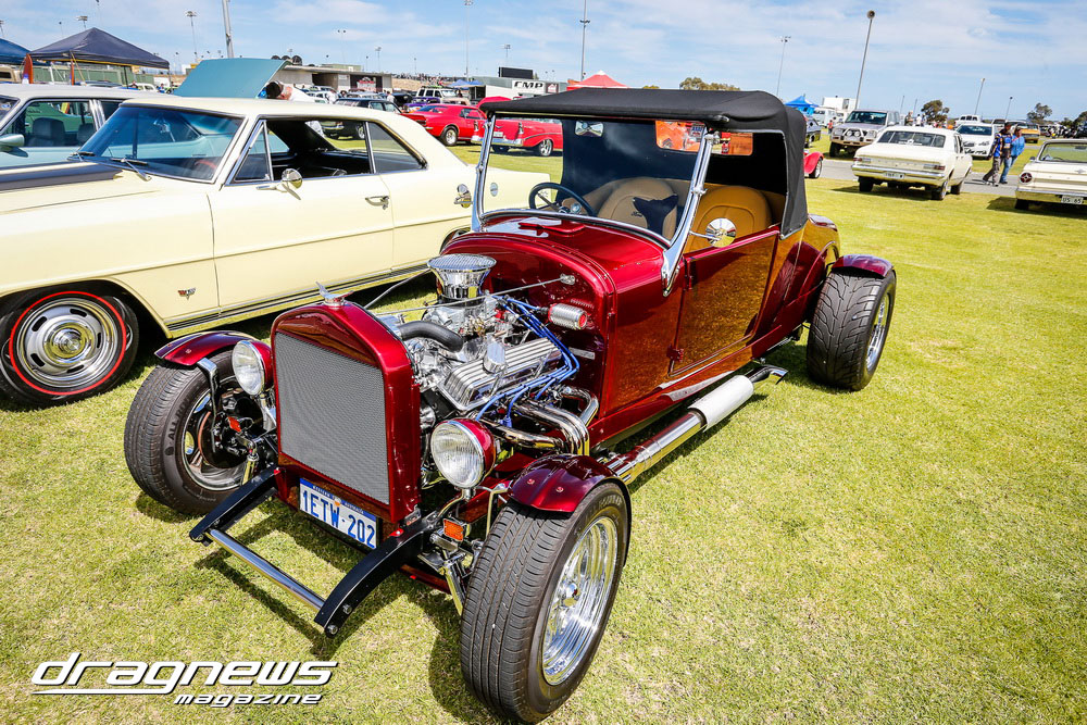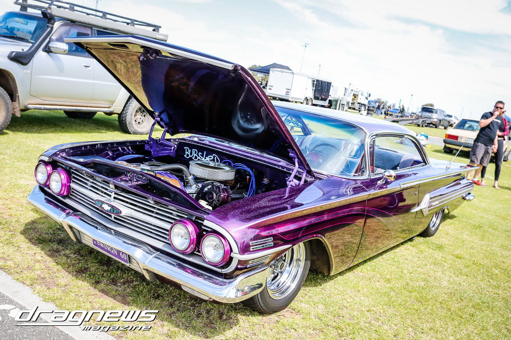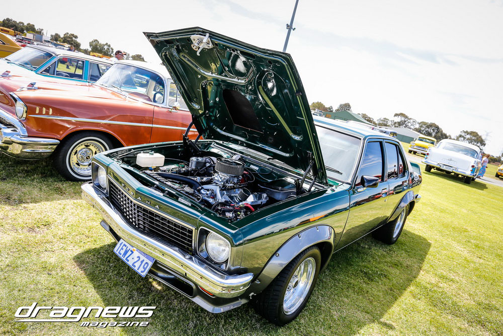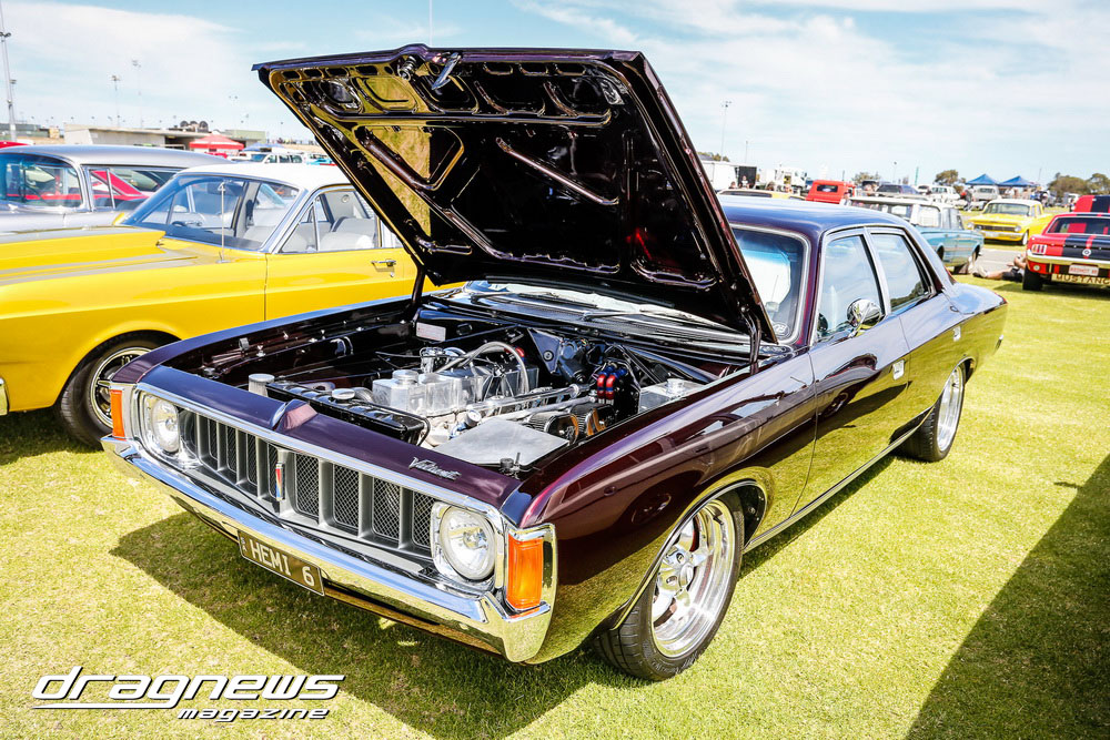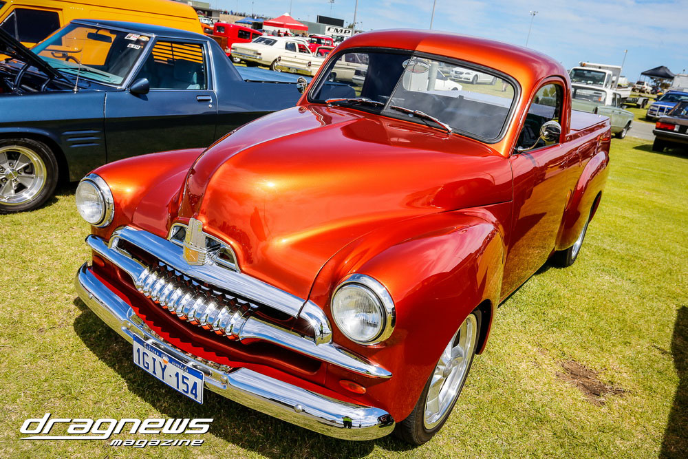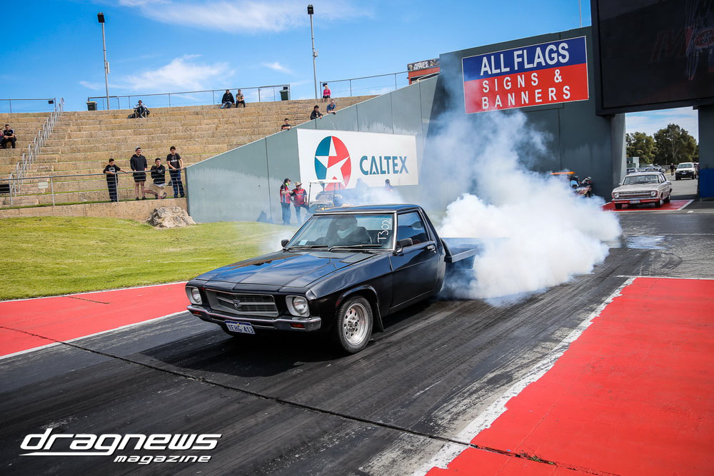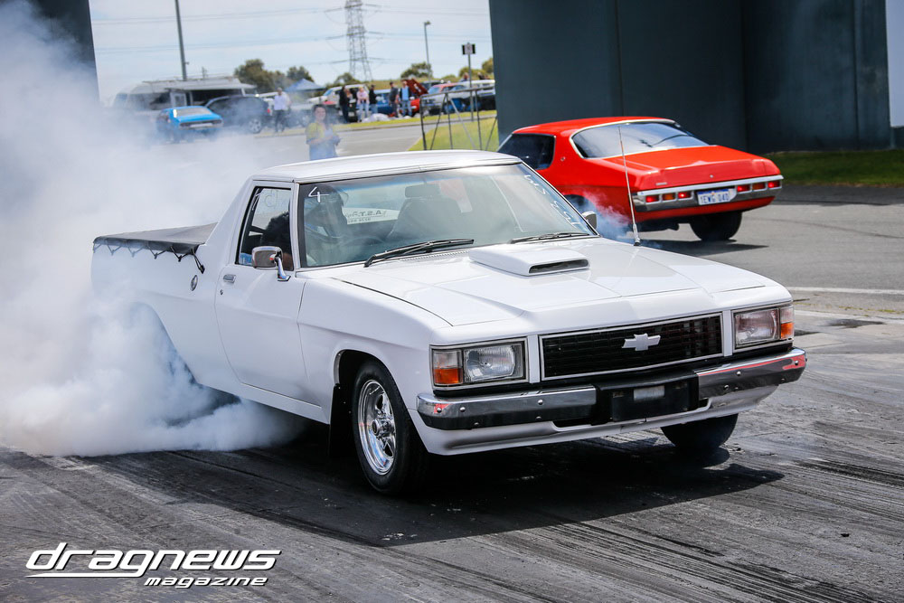 A massive car show and swap meet backed the ontrack action as the chrome bumper mob turned tyres in anger on the Perth Motorplex quarter mile.
