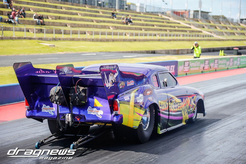 Result-wise Top Gas was the feature category and Daniel Kojic took home the winner trophy in his ’67 Chev. Christine May was his opponent in her colourful Studebaker, but unfortunately a red light ended her fight at the tree.