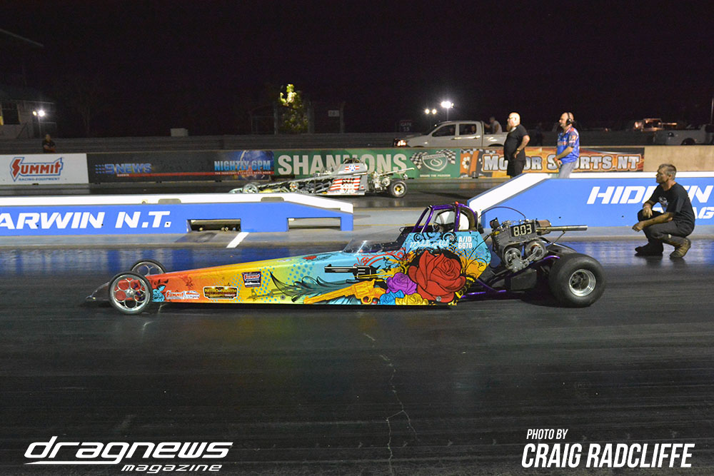 The championship in Top Eliminator was taken out by Matt Abel’s doorslammer, with Troy Wittwer taking the win points at the N.T finals in his Studebaker over Butch Morrison.
