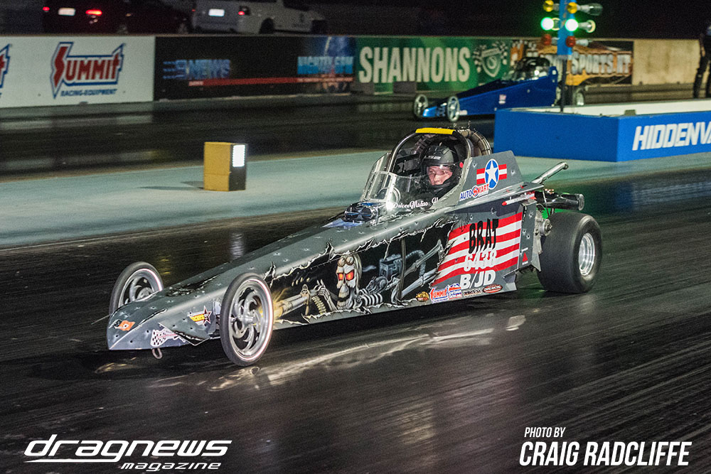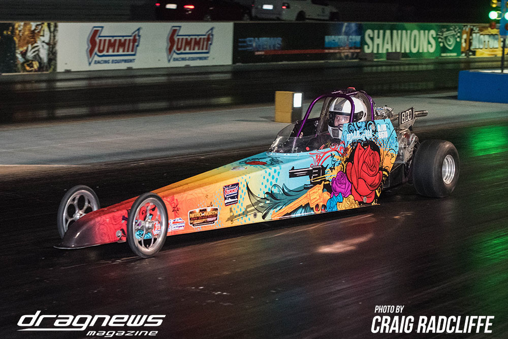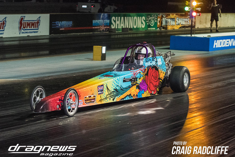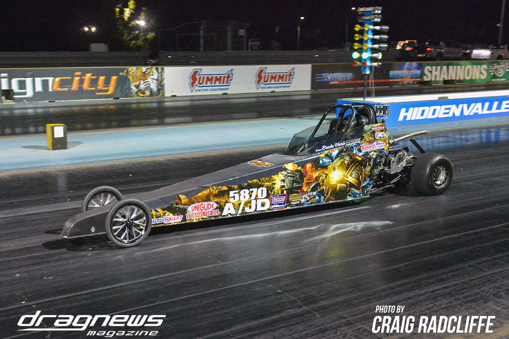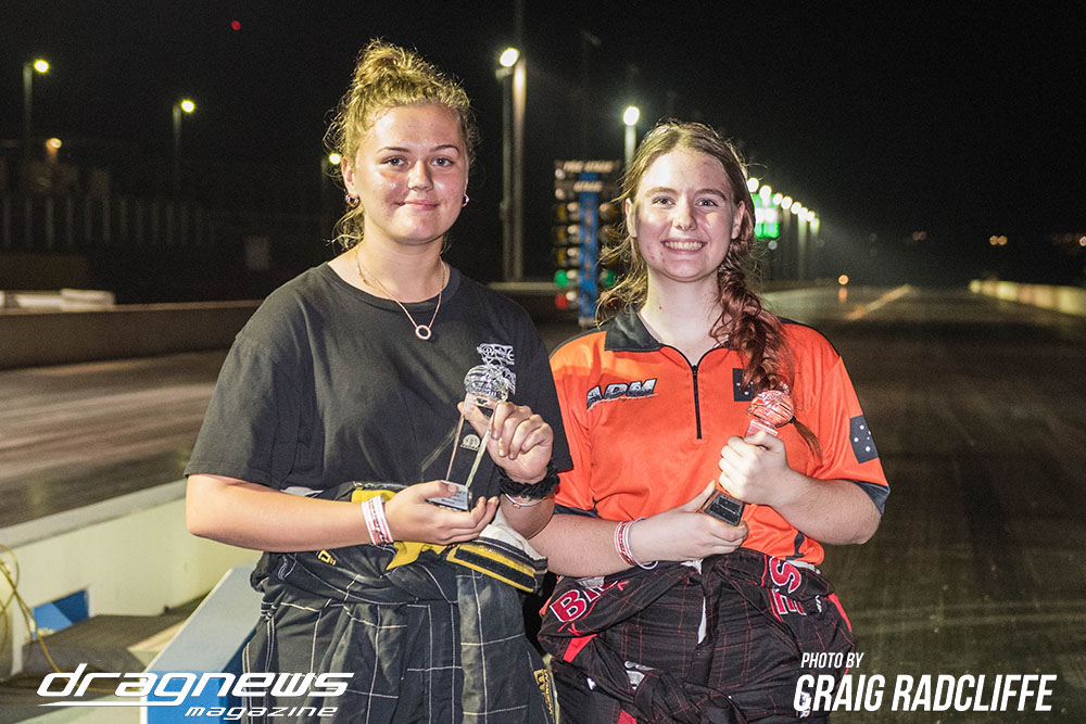 The duelling Harris and Abel families were at it again in Junior Dragster, this time it was Brooke Harris taking her second straight event win by defeating Michelle Abel with a perfect 9.360 on a 9.36 pass. Unfortunately for Brooke, she fell short of catching Aidan Abel for the title.