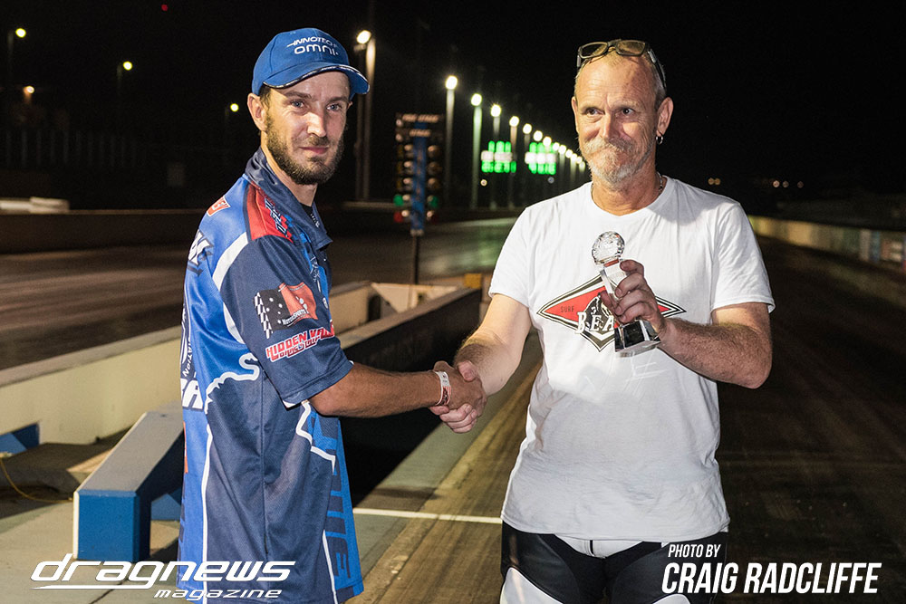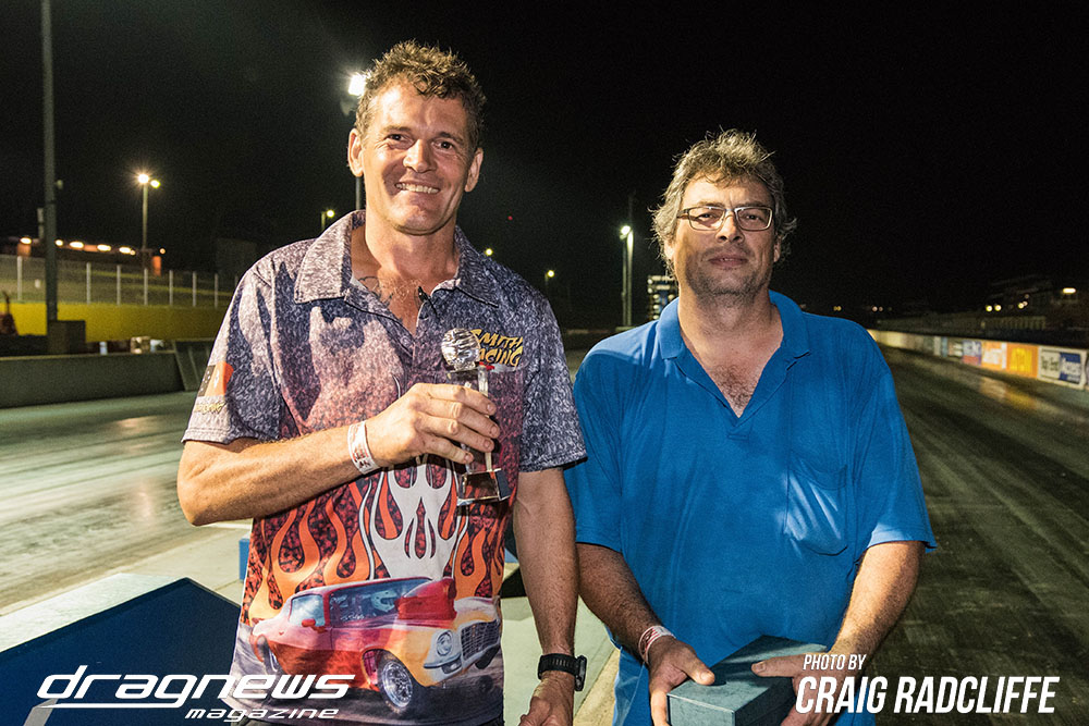 Ashley Smith made up for his foul start at the last round to win Super Modified in his Camaro with a nice 8.516 on a 8.50 against Allan Applebee who went too quick with the Gemini. But it was Michael Dureau who hung on for the championship by 10 points.