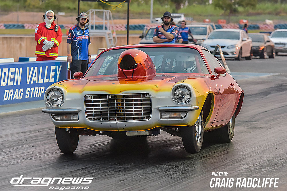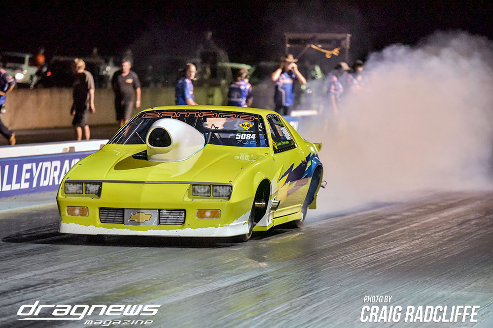 The event ran smoothly and the racing was close in all brackets, the only downside to the event was Dieter Herrmann’s crash in the third round of Top Eliminator. Dieter’s nitrous equipped Camaro drifted out to the centre line then came around, contacting the wall at the finish line. Dieter emerged from the car under his own power and later went to hospital for a check and was found to have a broken rib.