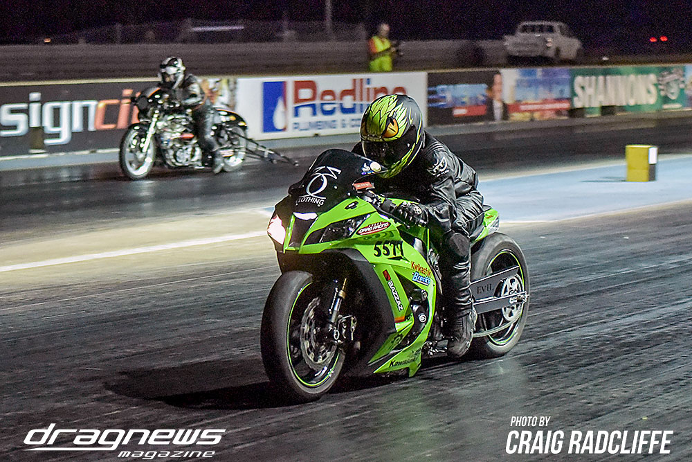 Competitor numbers were a little down due to some racers having last minute issues and others waiting on parts. It was pleasing to see a good turn out of motorcycles and also some new racers in the off street category that have well and truly got bitten by the drag racing bug.
