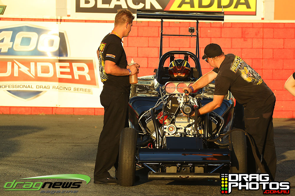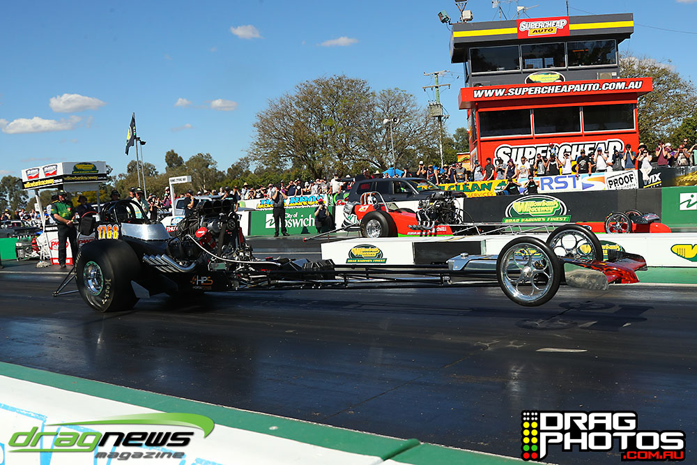 The pair upped their game in the next round with a killer 6.015 from Psycho III beside a 6.031 from Rick Gauci in Bezerk – the quickest side by side nitro altered pass in Australia.
