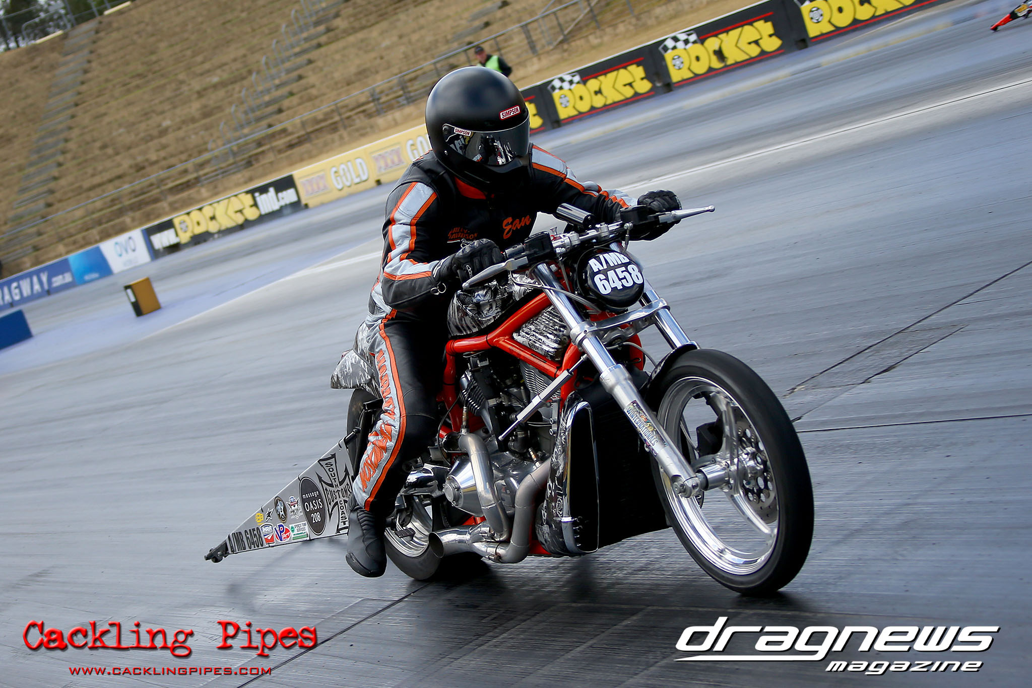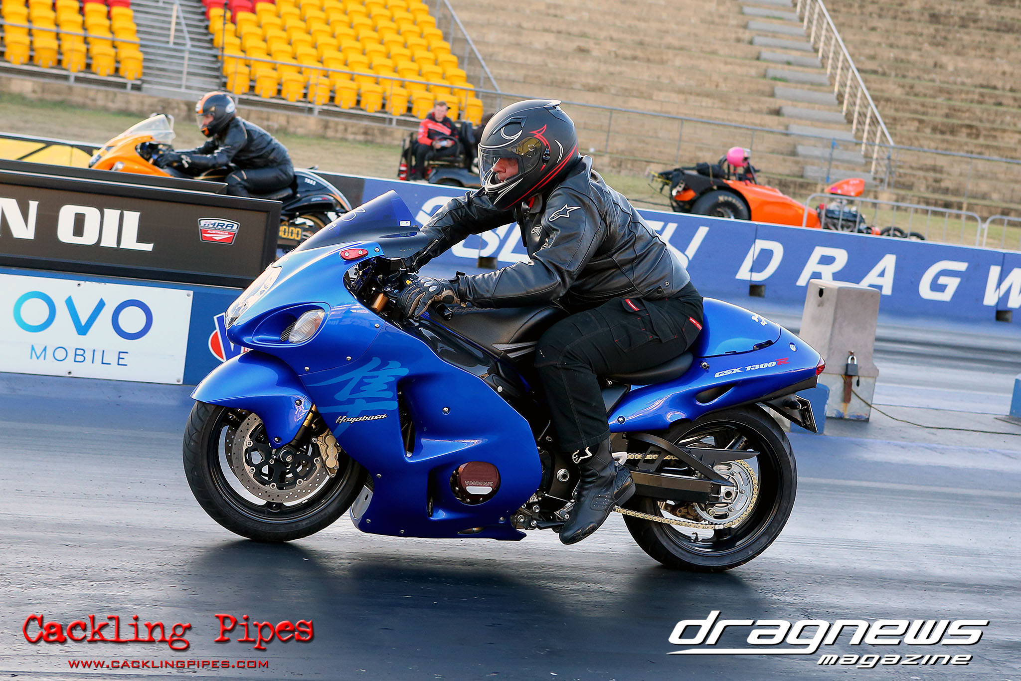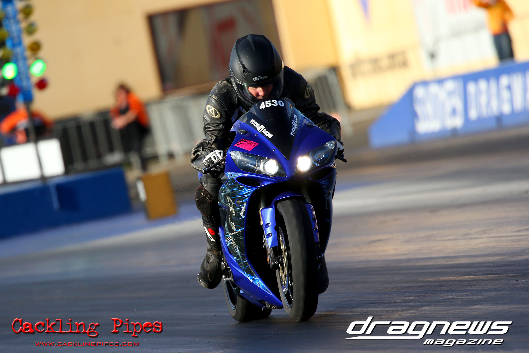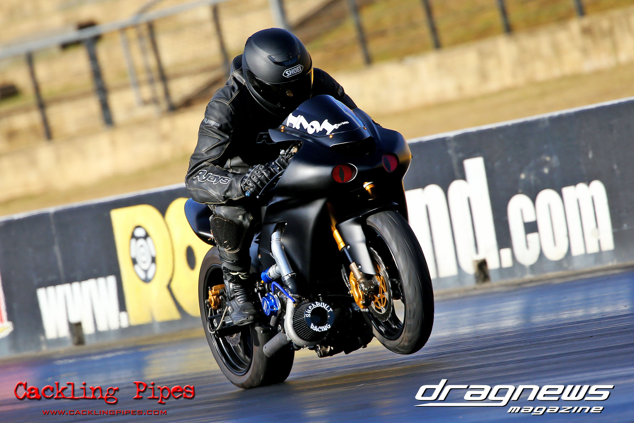 Modified Bike chase is now down to two. Robert Simmonds had the proverbial 50 cent part fail at the last event knocking him out in the semi final, well the Hayabusa rider took revenge with the victory and the championship lead when he defeated Mark Walmsley in the final. The win moves the “Simmonater” ten points into the lead over Lorenzo Capogna’s VROD.