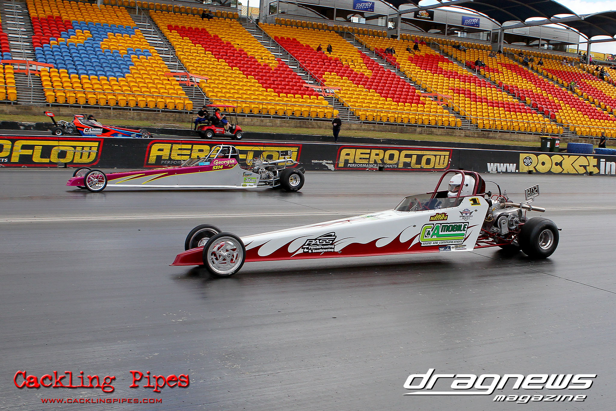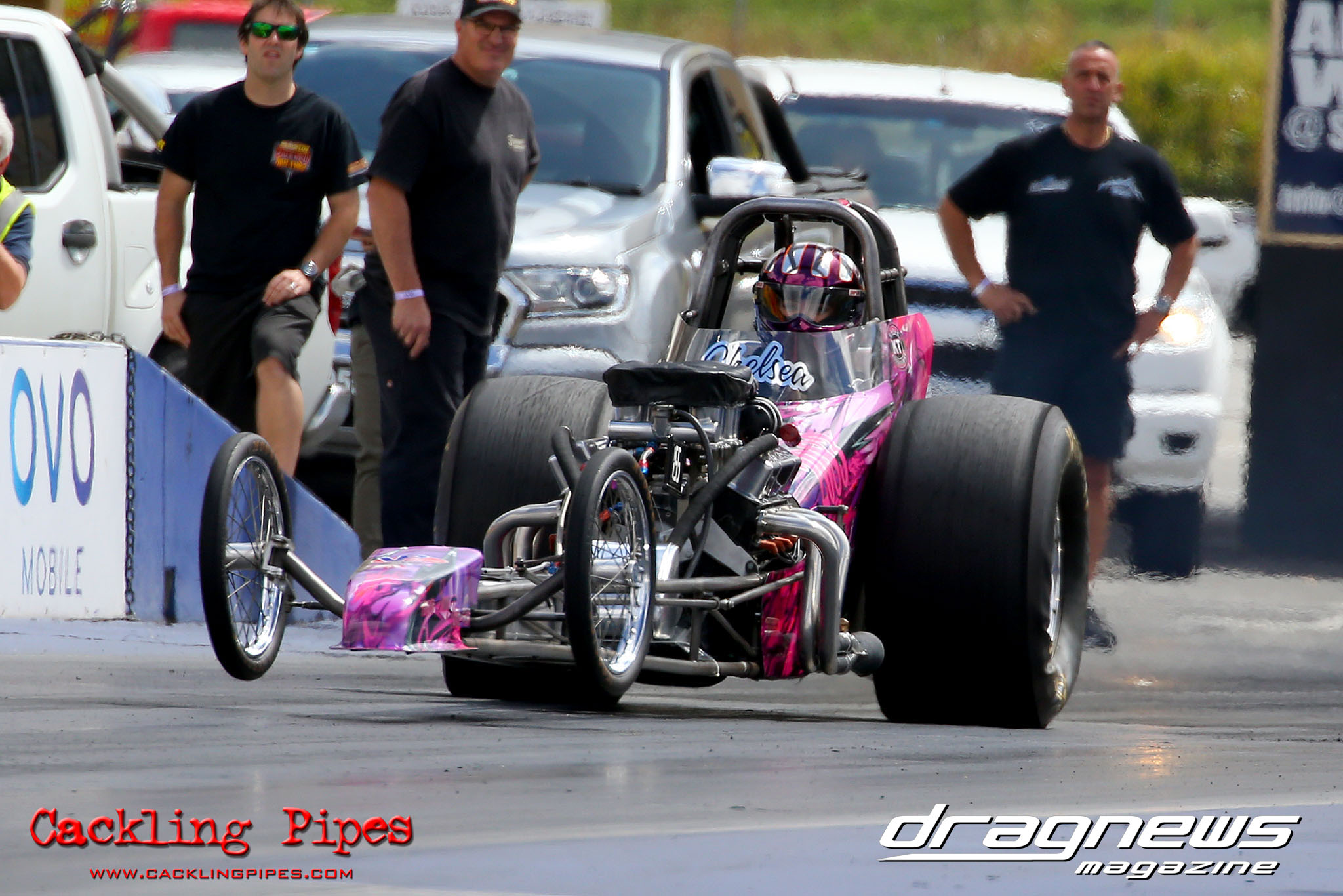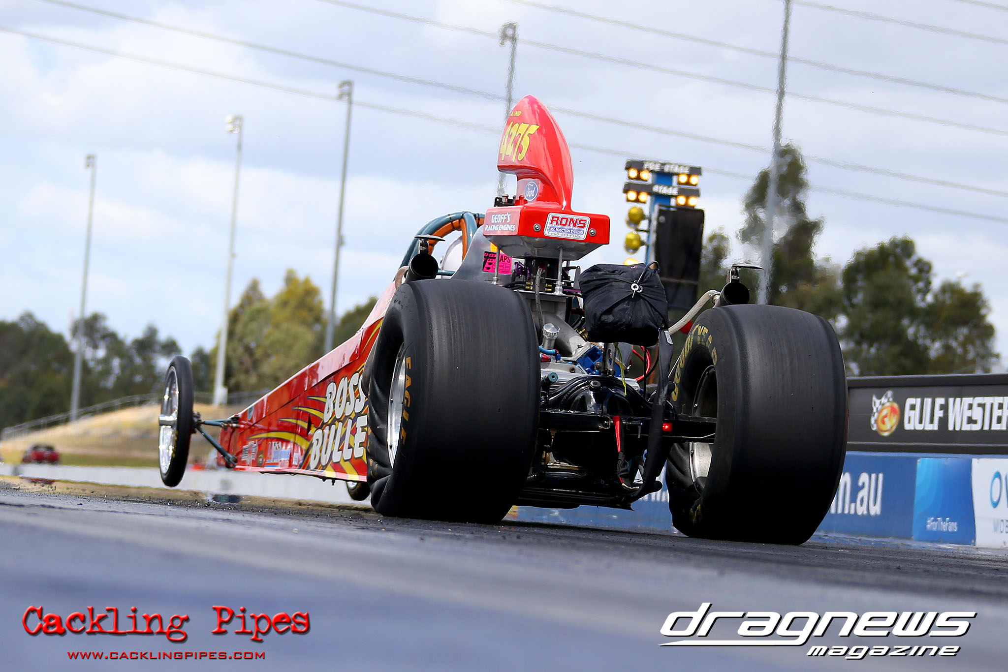 Starting off with Supercharged Outlaws and championship leader Norm McCormack’s first round exit at the wheel of a returning Matty Evans left the door ajar for his championship challengers to close the points gap – Evan’s hitting the track again in his rebuilt FED after a towing accident on the way to last year’s Winternationals.