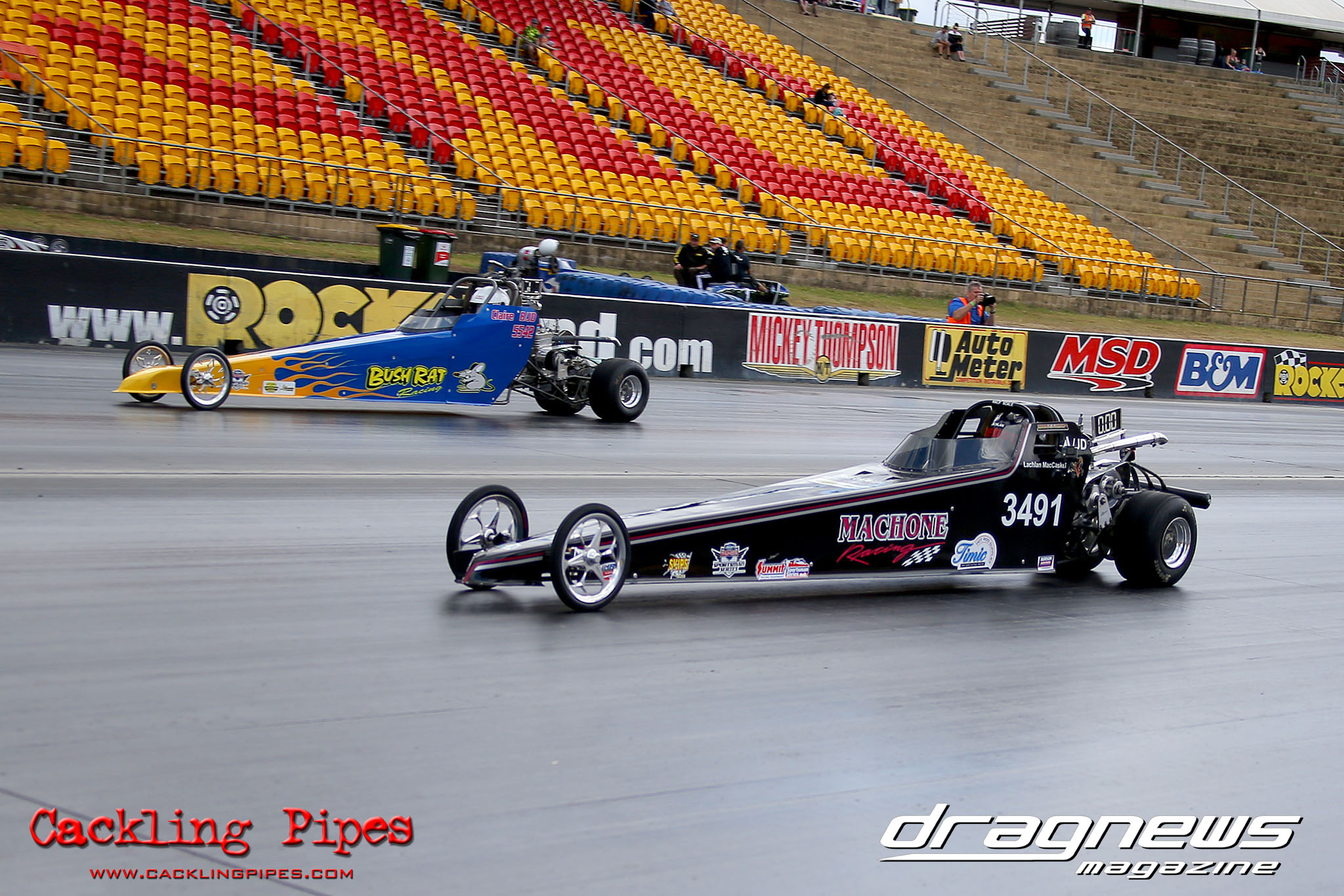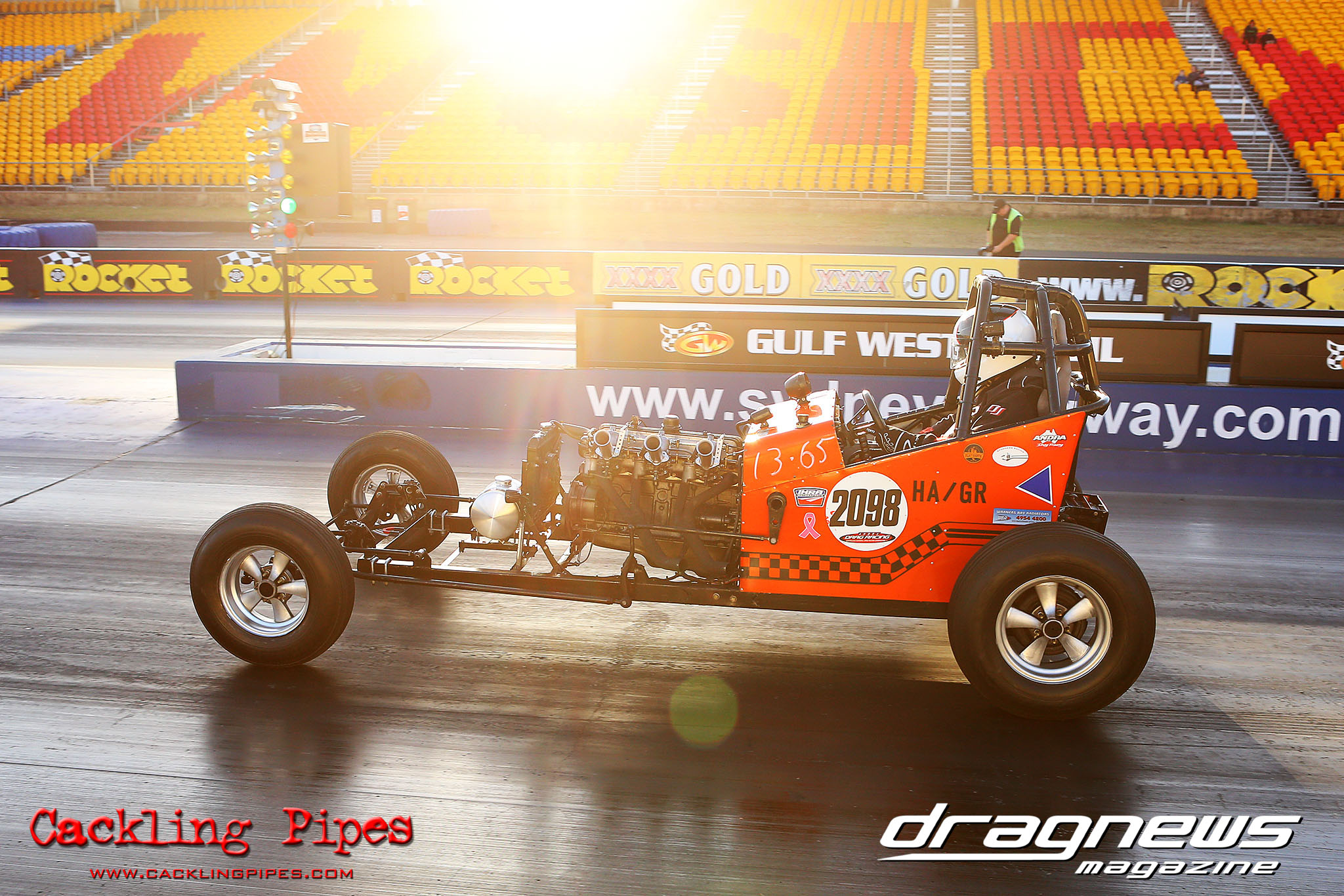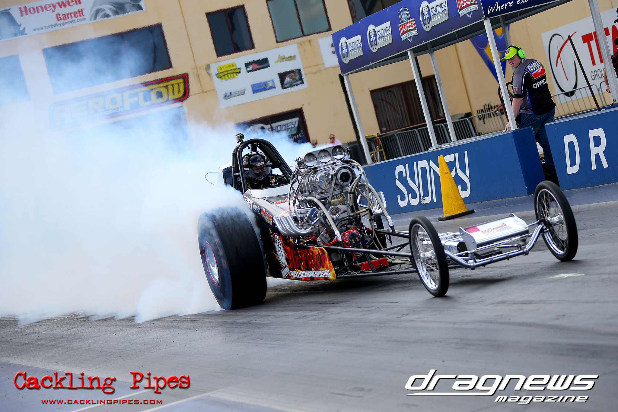 Starting off with Supercharged Outlaws and championship leader Norm McCormack’s first round exit at the wheel of a returning Matty Evans left the door ajar for his championship challengers to close the points gap – Evan’s hitting the track again in his rebuilt FED after a towing accident on the way to last year’s Winternationals.