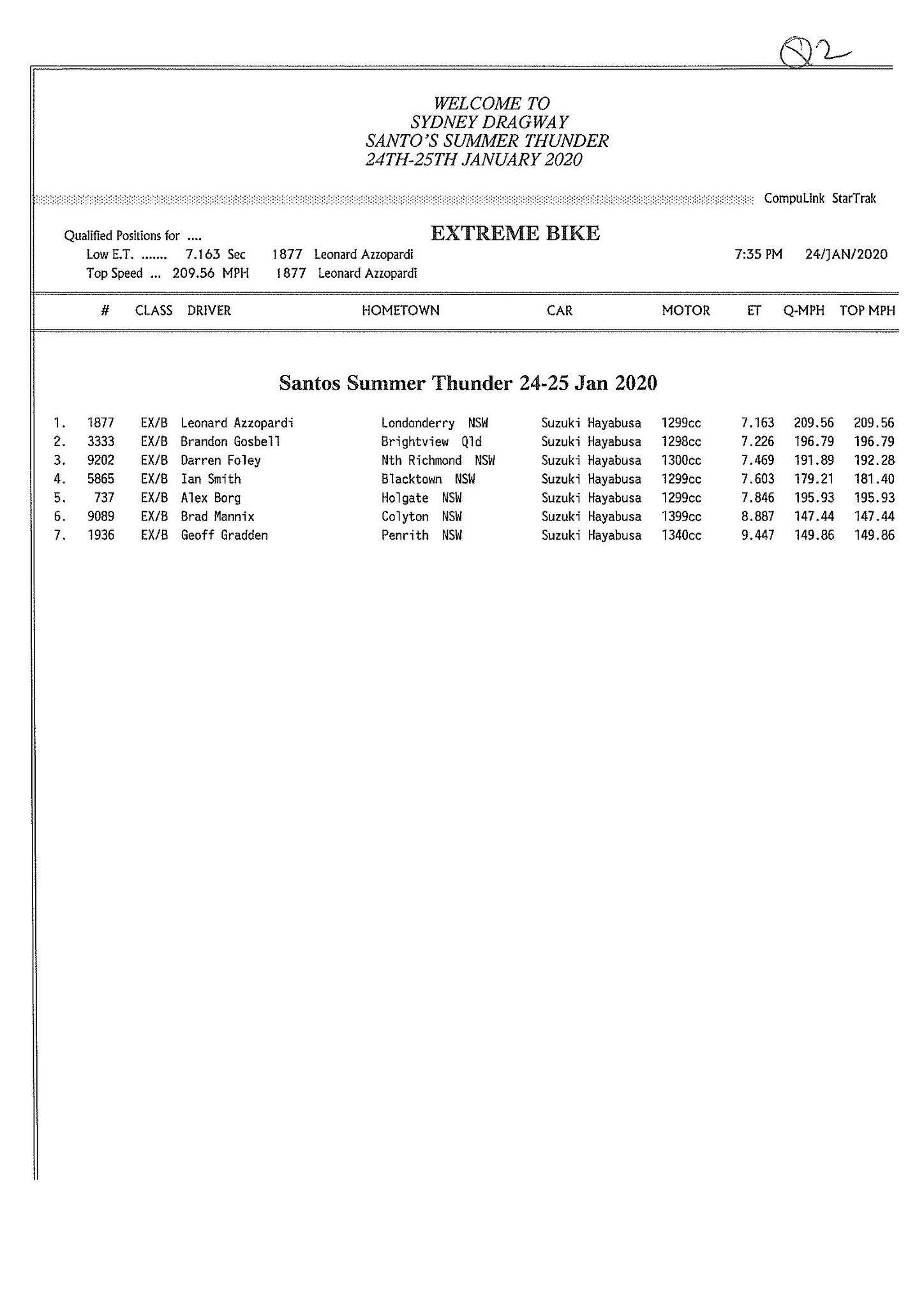 Extreme Bike saw speed king Leonard Azzopardi well and truly in top spot with a 7.16/209mph, leading Brandon Gosbell’s 7.22.