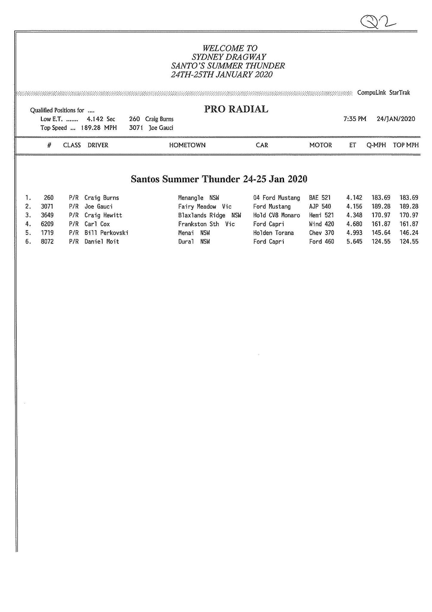 A small Pro Radial field saw Craig Burns top the list with a 4.142, just ahead of Joe Gauci’s 4.156.