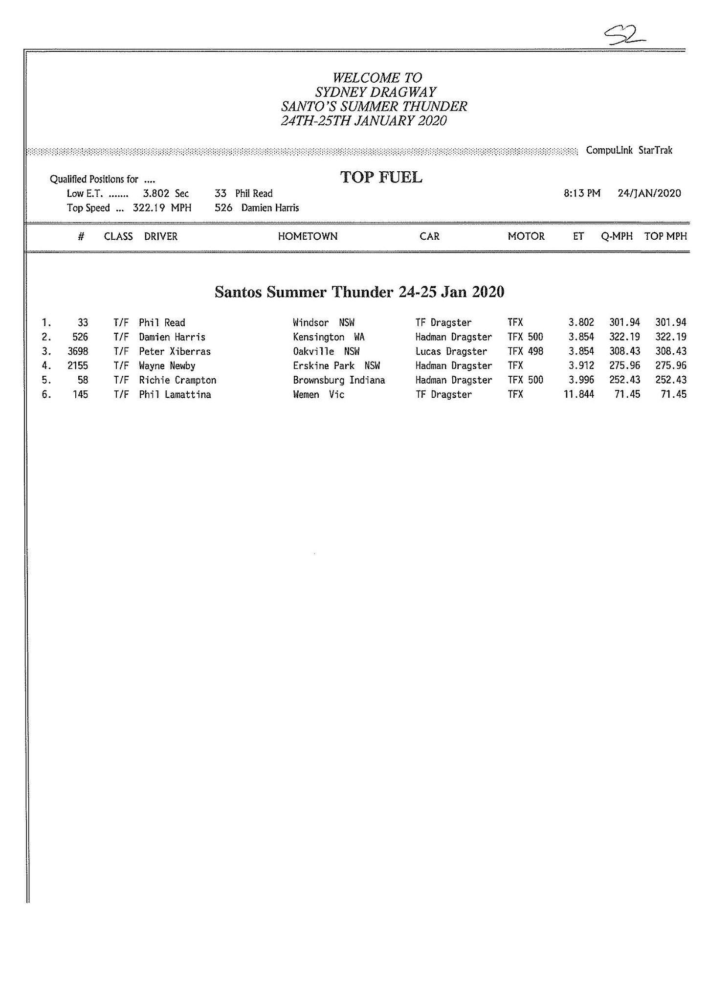 Phil Read dropped the quickest Top Fuel pass ever seen at Sydney Dragway in Friday night testing for Santo’s Summer Thunder.