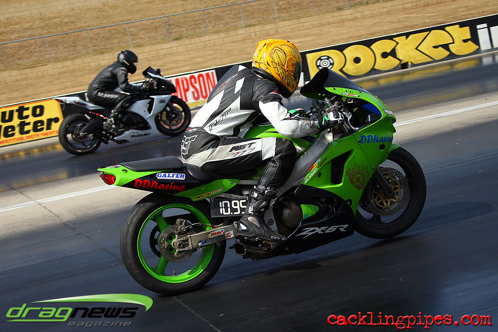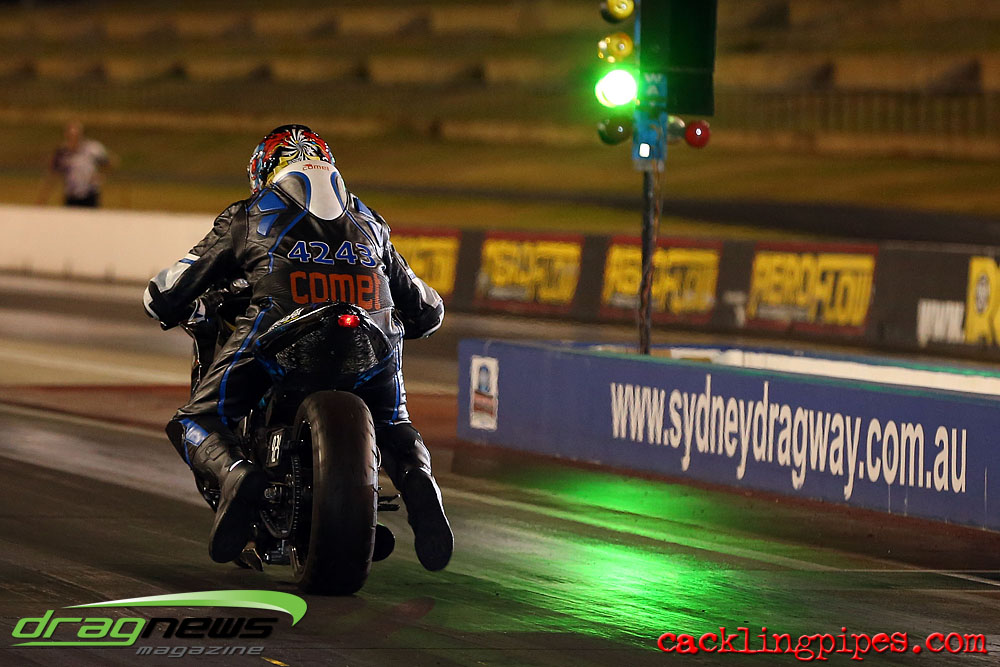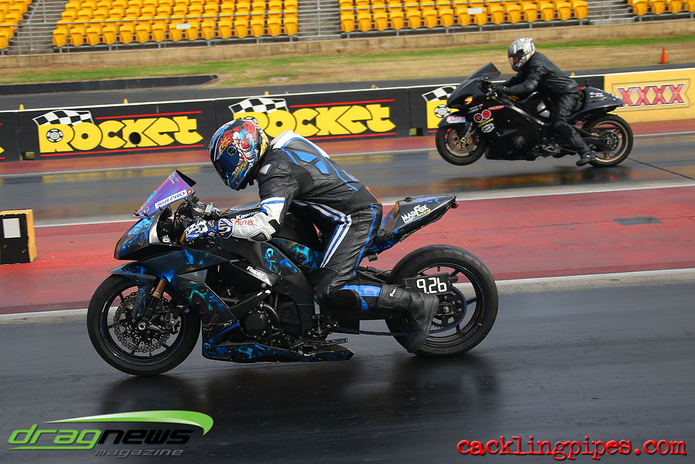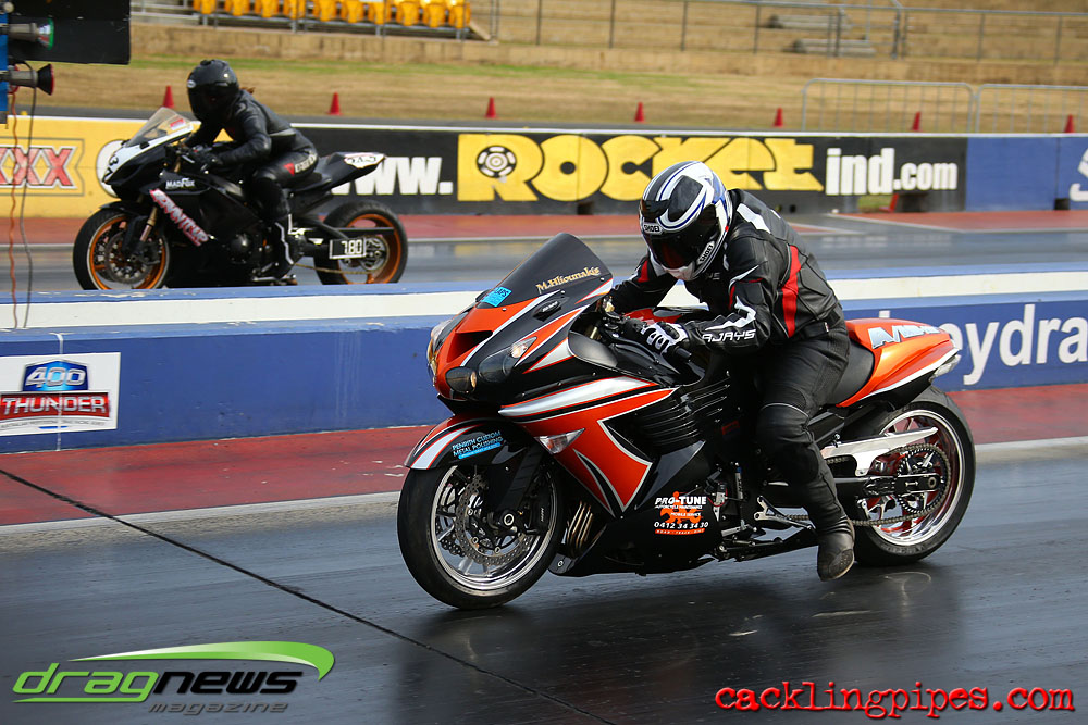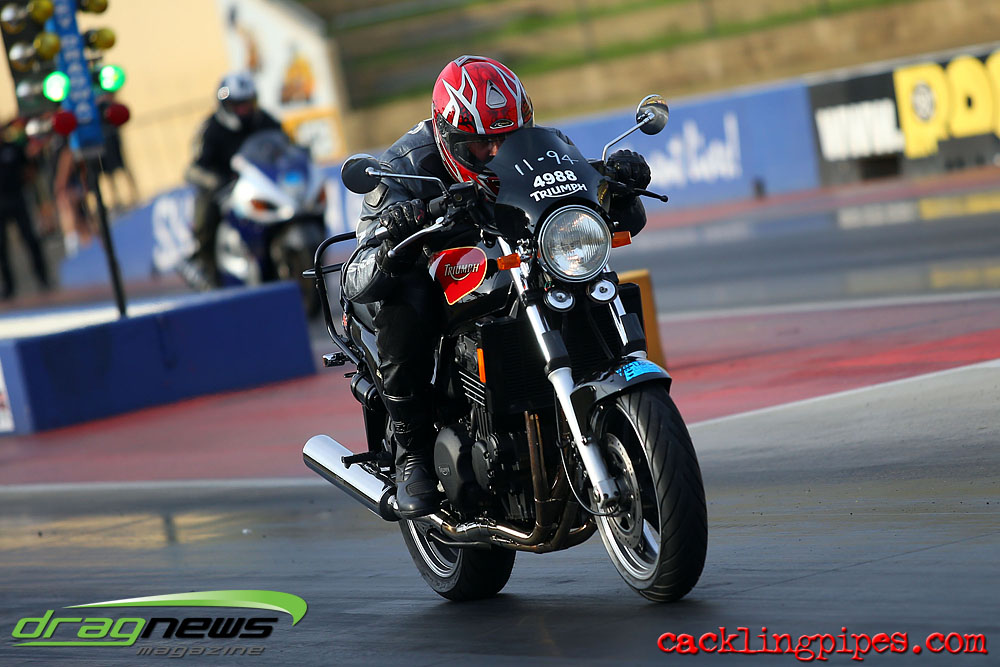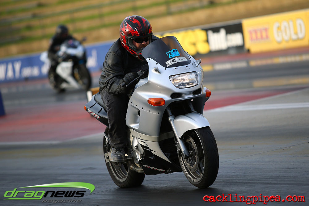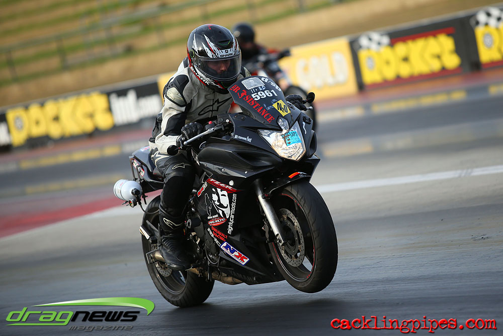 Neither rider in the Street Bike final came close to their dial in, Brendan Miglionico nabbed the win with a 10.63 on a 10.21 over Michael Close’s 11.76 on a 11.10.