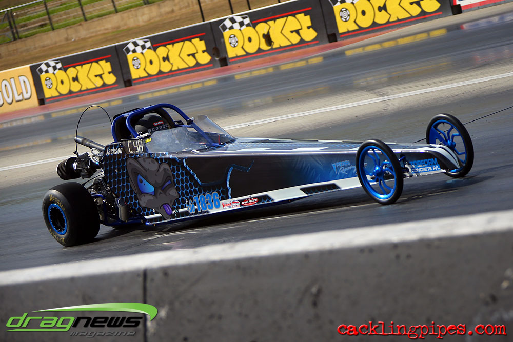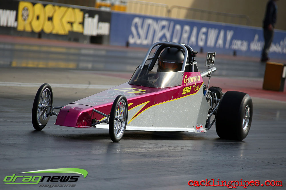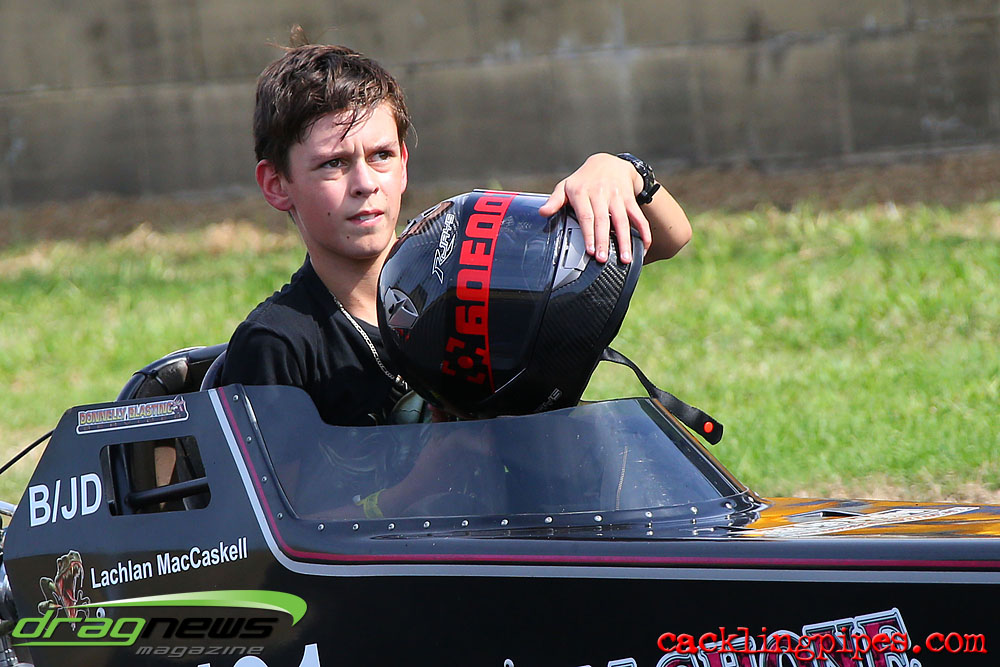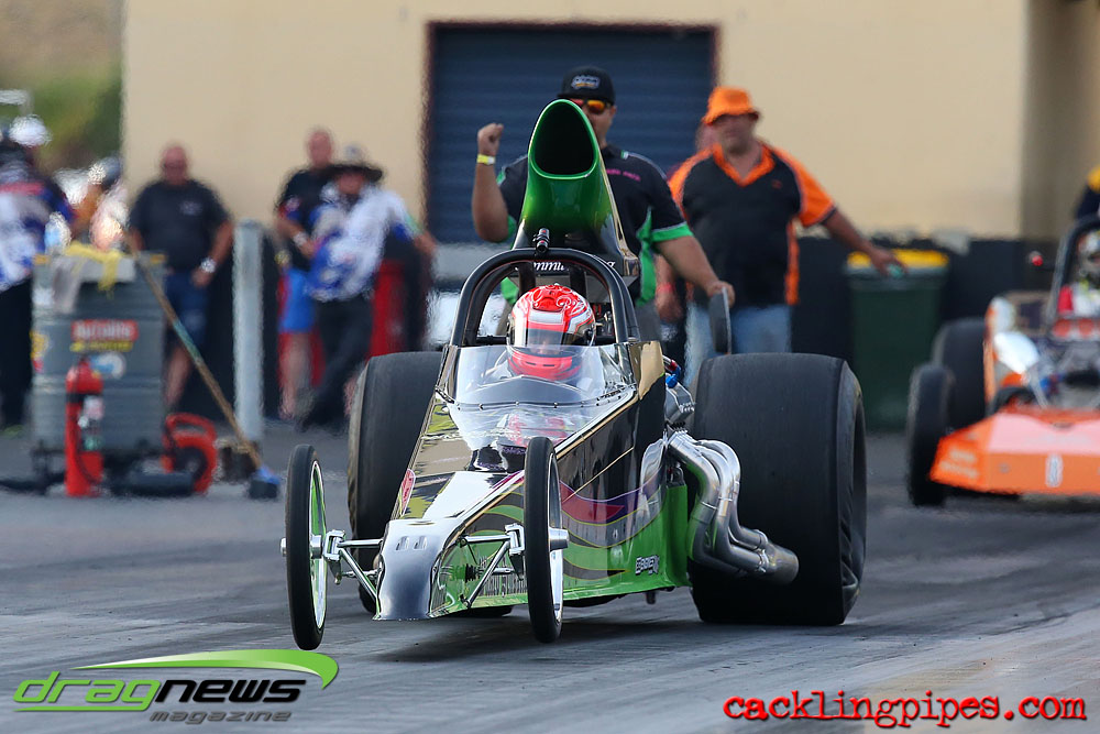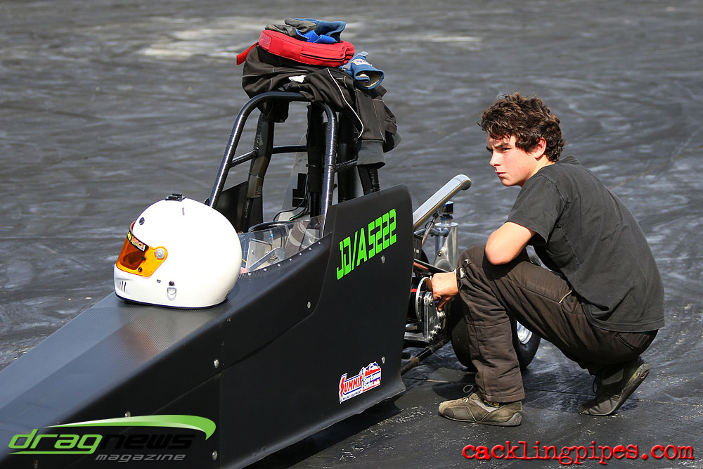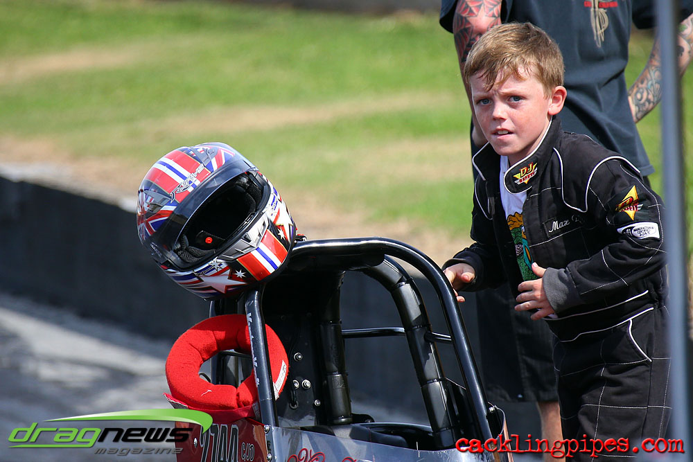Joel Burns wrapped up Junior Dragster with a holeshot 8.077 on a 8.04 pass to down Georgia Fardella’s 8.584 on a 8.57, young Georgia though moved equal points leader through consistent results this season.
