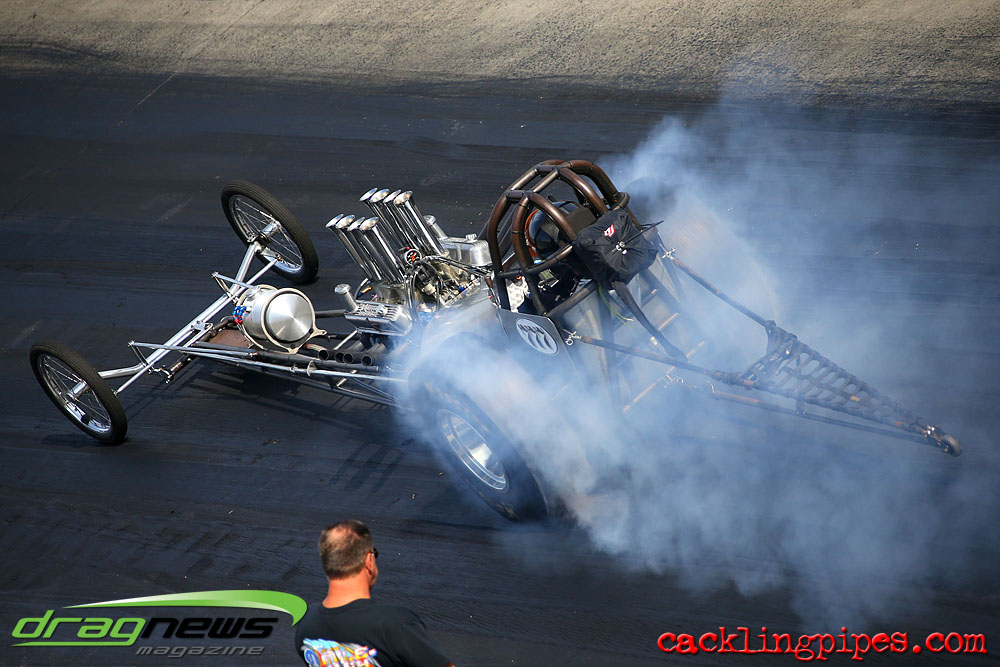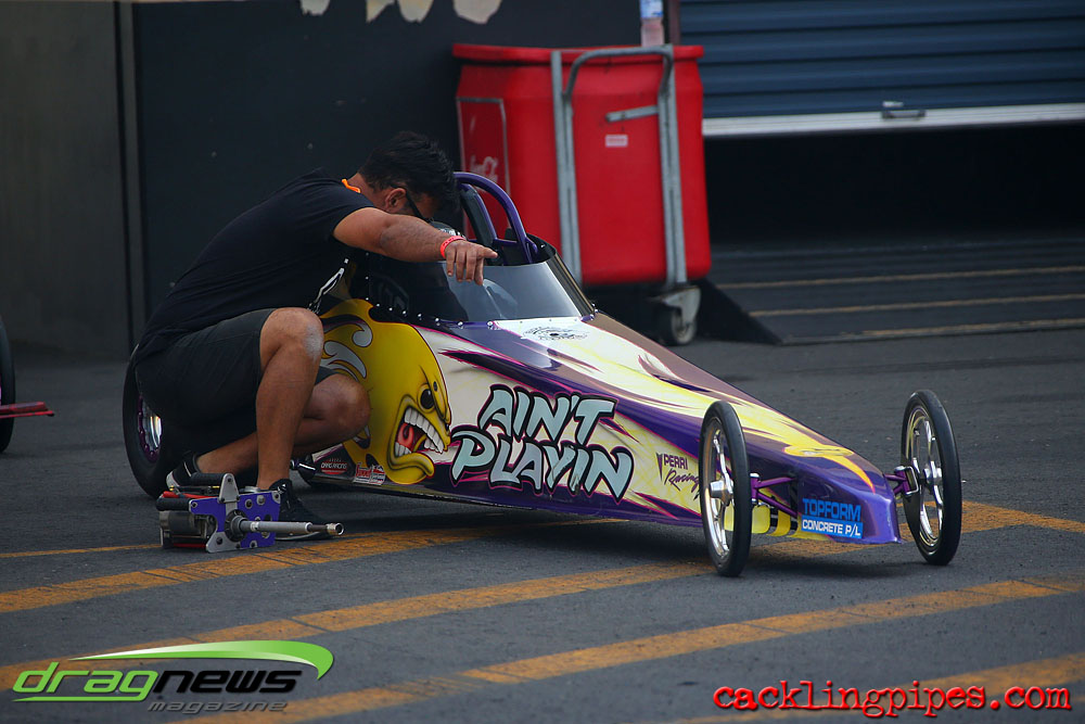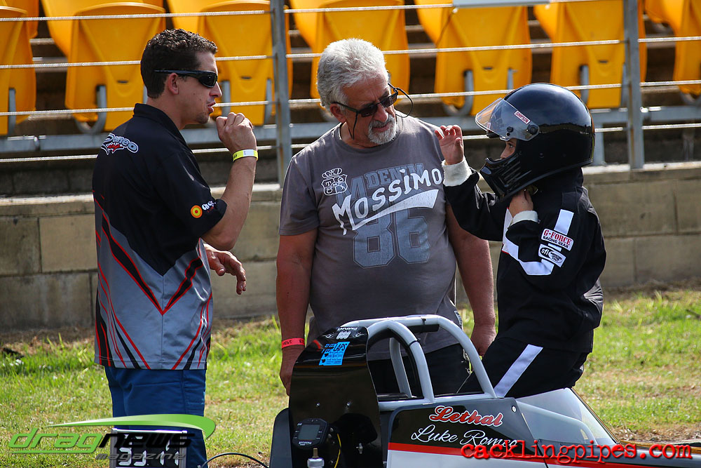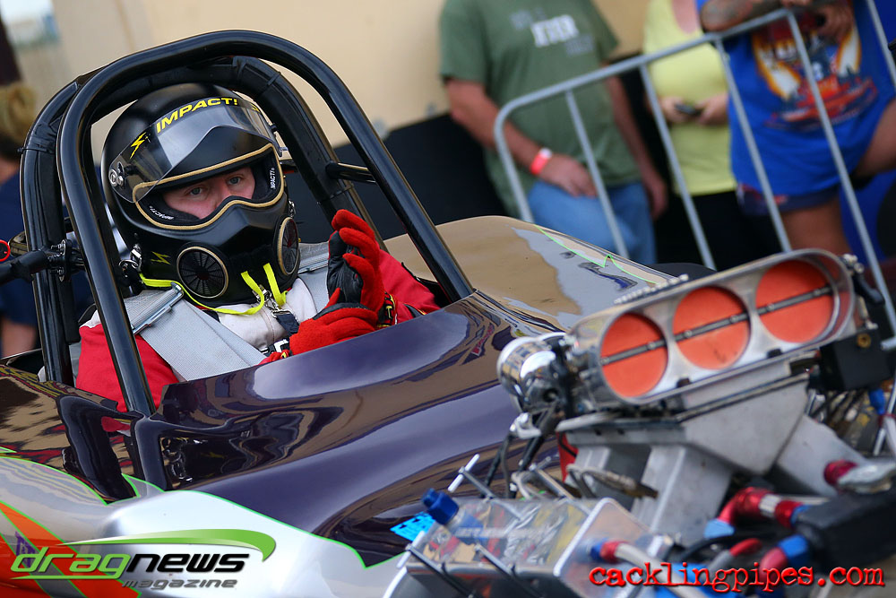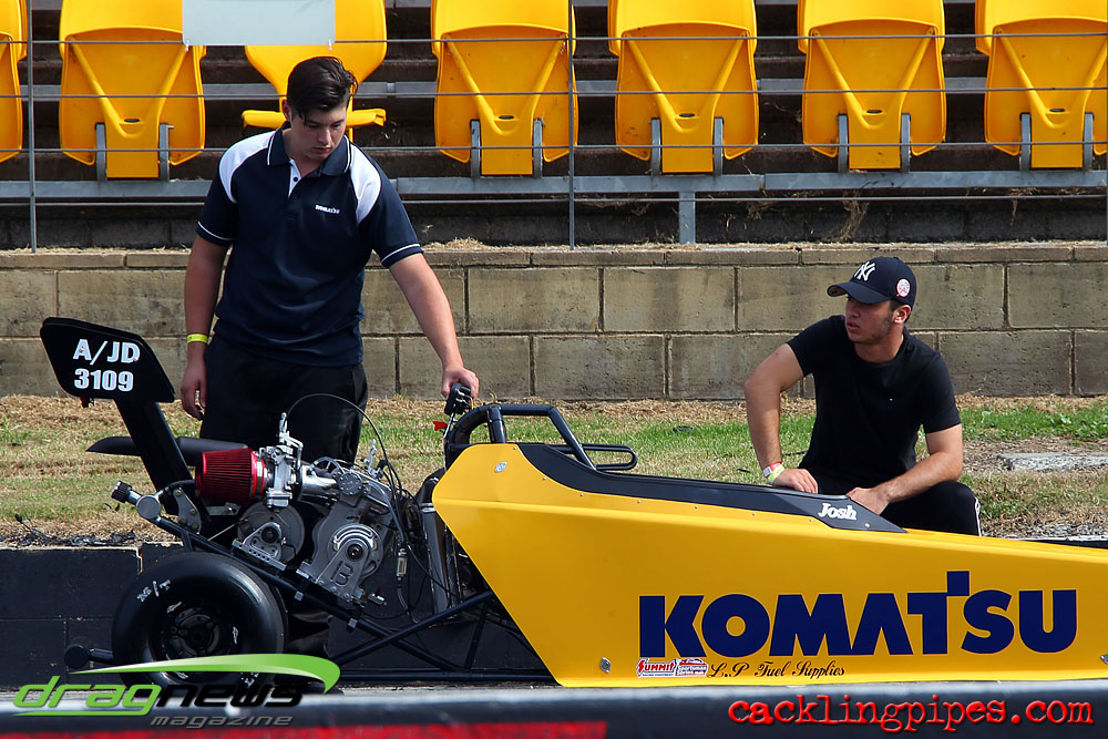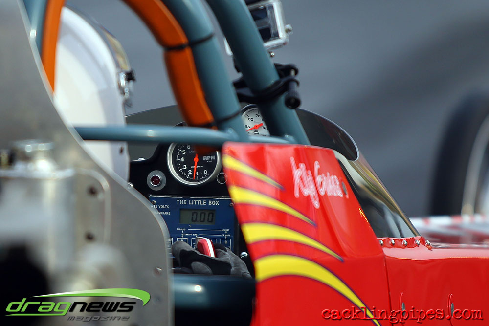 Joel Burns wrapped up Junior Dragster with a holeshot 8.077 on a 8.04 pass to down Georgia Fardella’s 8.584 on a 8.57, young Georgia though moved equal points leader through consistent results this season.