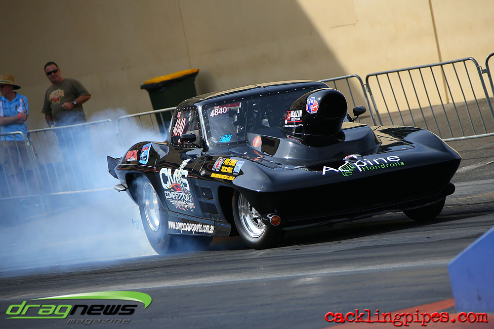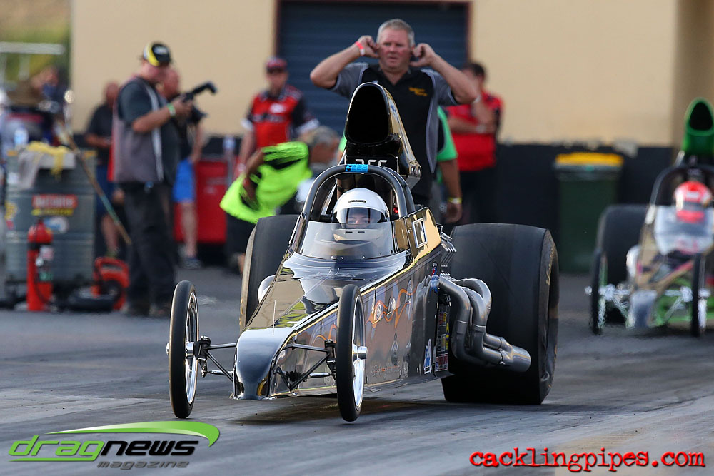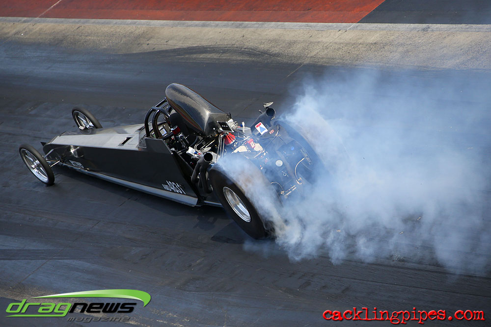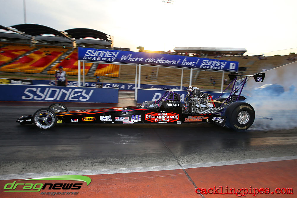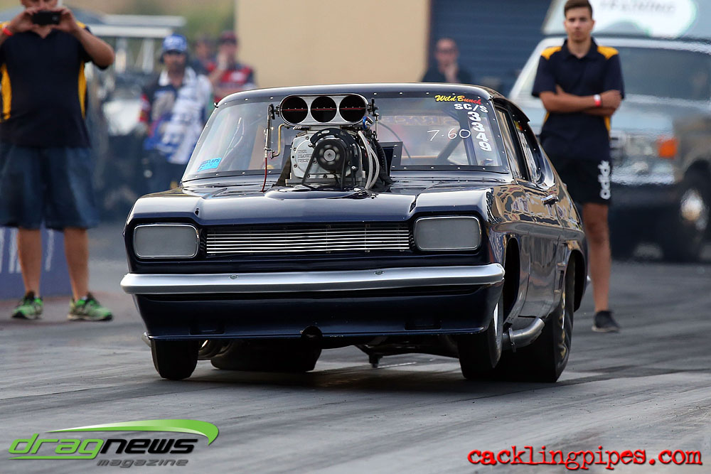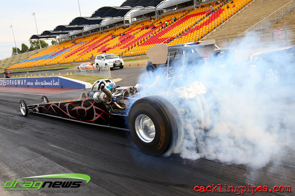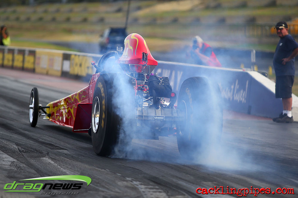In Supercharged Outlaws, newcomer to the class Gordon Carlsen checked off his first six second and double tonne runs with a 6.89 and 202mph with his new blown altered. Carlsen blazed the tyres and fell to John Ward in the semi finals, as the HPW dragster moved on to meet Rob Coote’s altered in the final. Ward strapped a tenth on Coote at the green and despite running 6.56 on a 6.52 Coote could not reel back in Ward’s 7.39 on a 7.25.