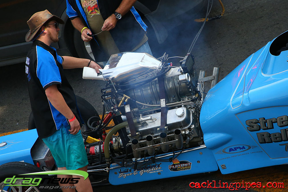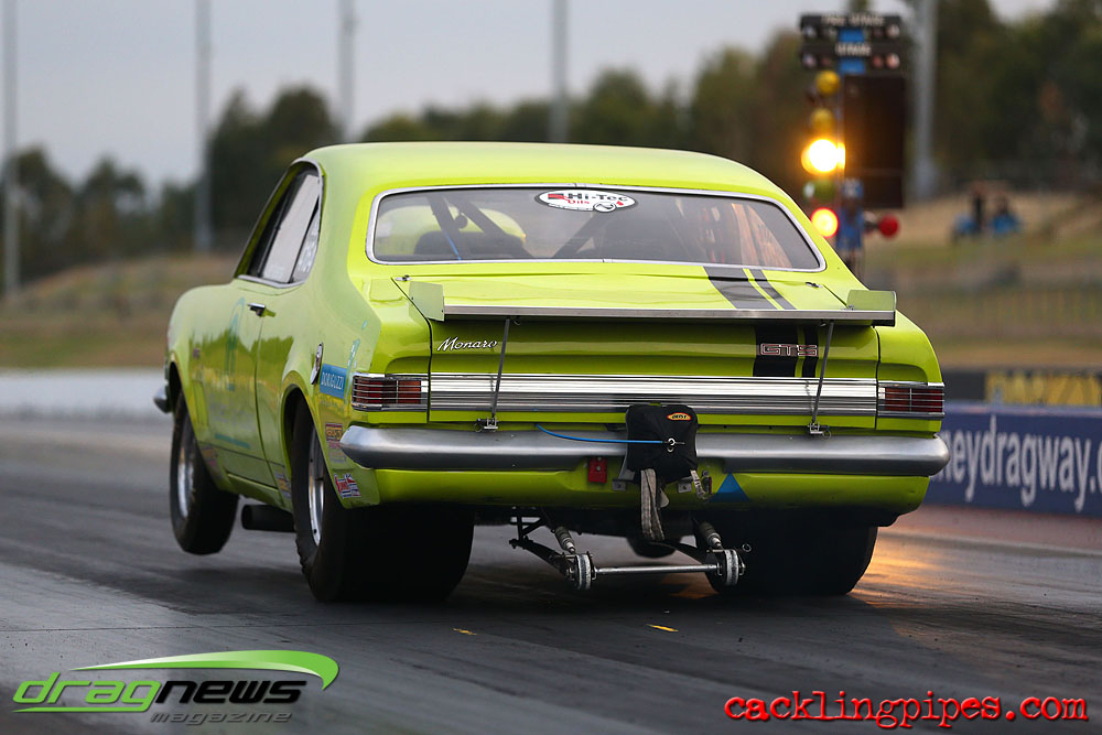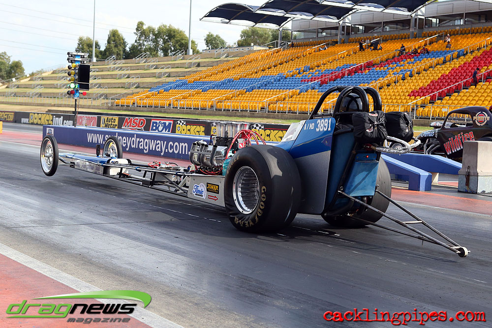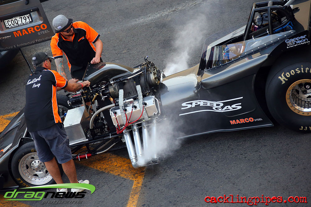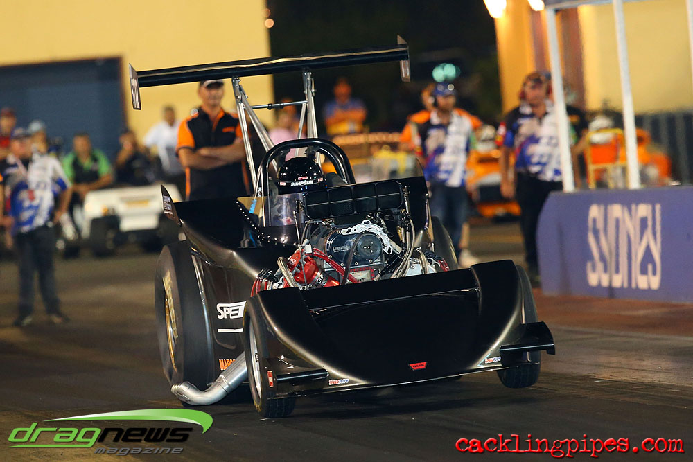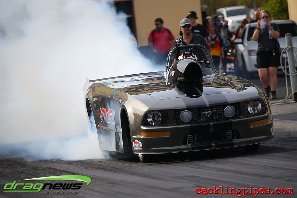 In Supercharged Outlaws, newcomer to the class Gordon Carlsen checked off his first six second and double tonne runs with a 6.89 and 202mph with his new blown altered. Carlsen blazed the tyres and fell to John Ward in the semi finals, as the HPW dragster moved on to meet Rob Coote’s altered in the final. Ward strapped a tenth on Coote at the green and despite running 6.56 on a 6.52 Coote could not reel back in Ward’s 7.39 on a 7.25.