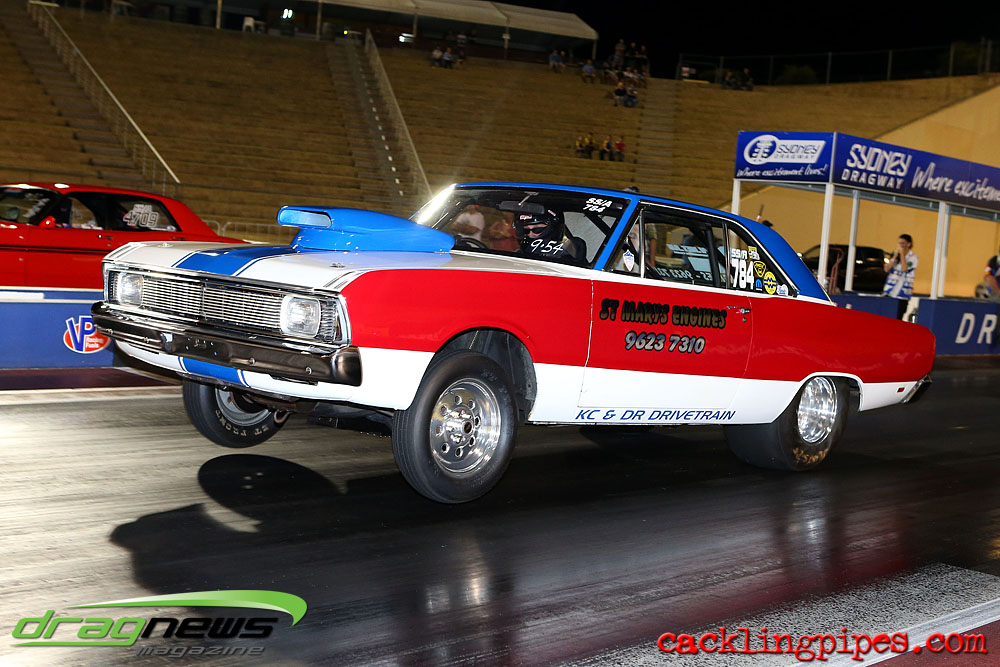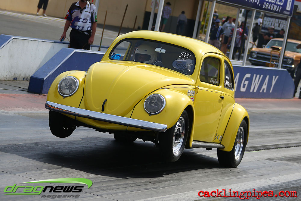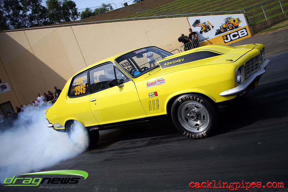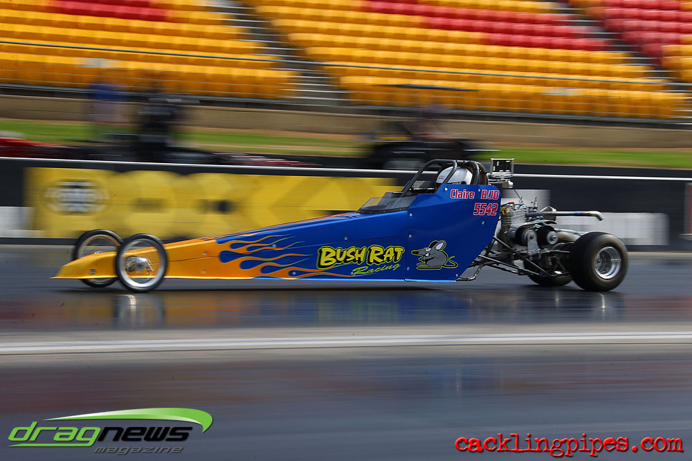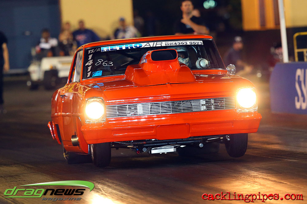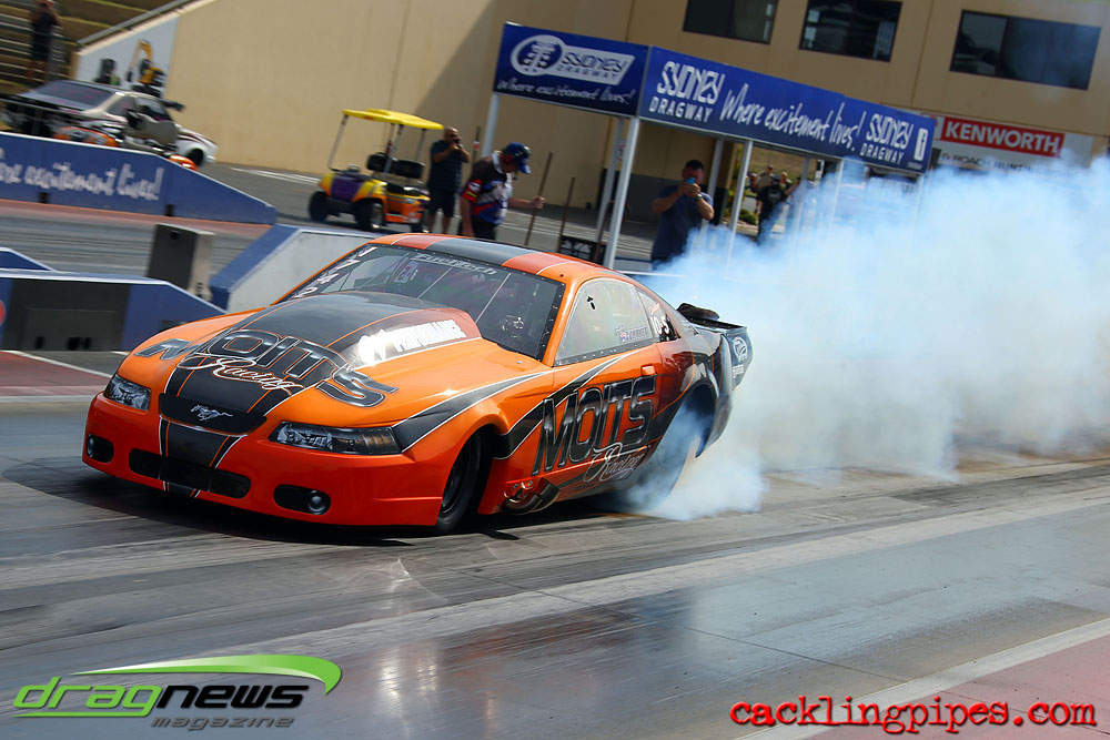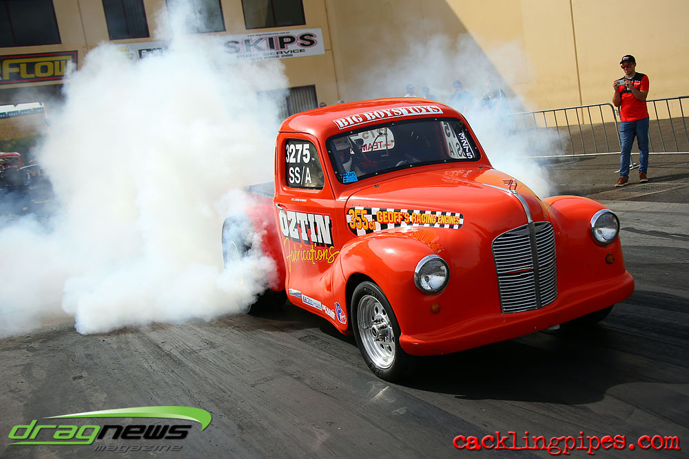 In Supercharged Outlaws, newcomer to the class Gordon Carlsen checked off his first six second and double tonne runs with a 6.89 and 202mph with his new blown altered. Carlsen blazed the tyres and fell to John Ward in the semi finals, as the HPW dragster moved on to meet Rob Coote’s altered in the final. Ward strapped a tenth on Coote at the green and despite running 6.56 on a 6.52 Coote could not reel back in Ward’s 7.39 on a 7.25.
