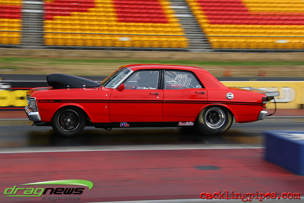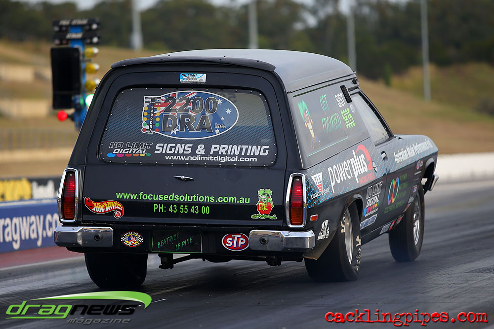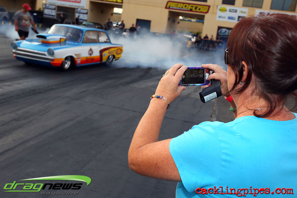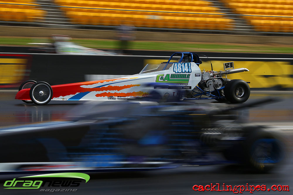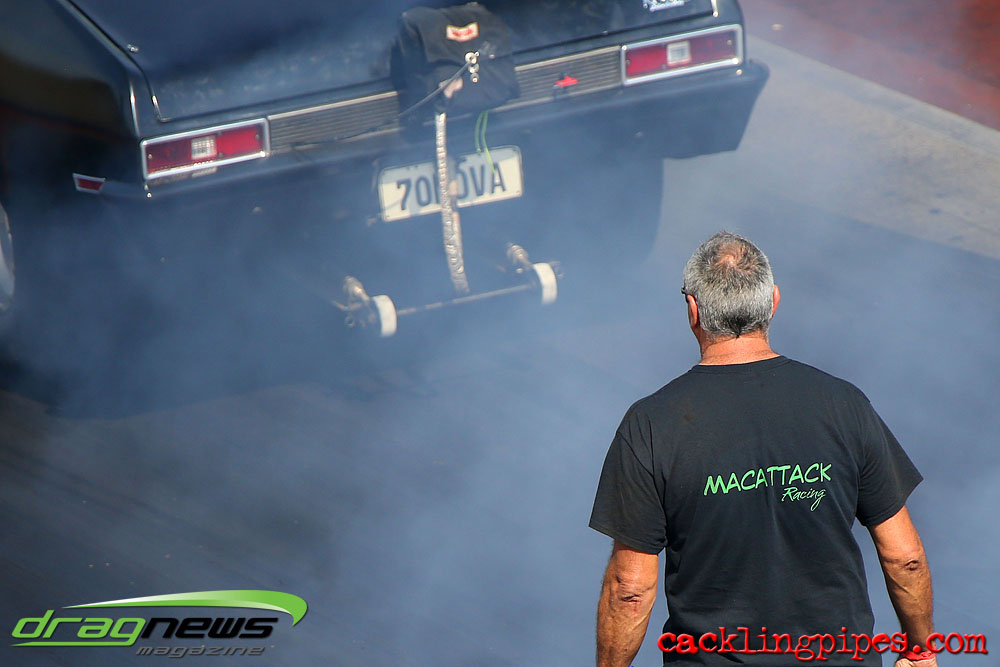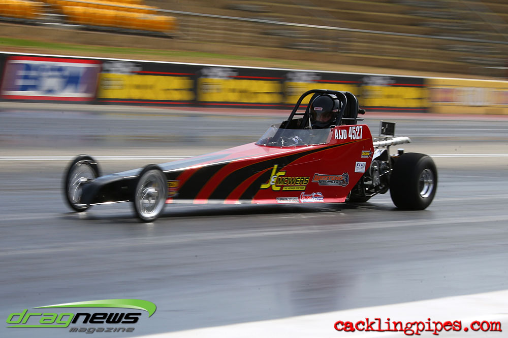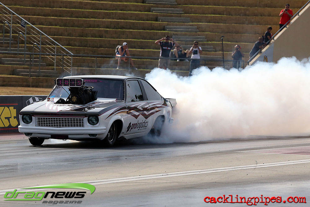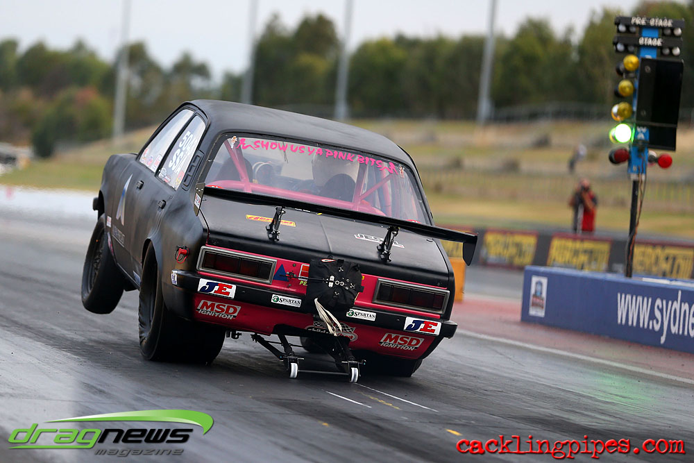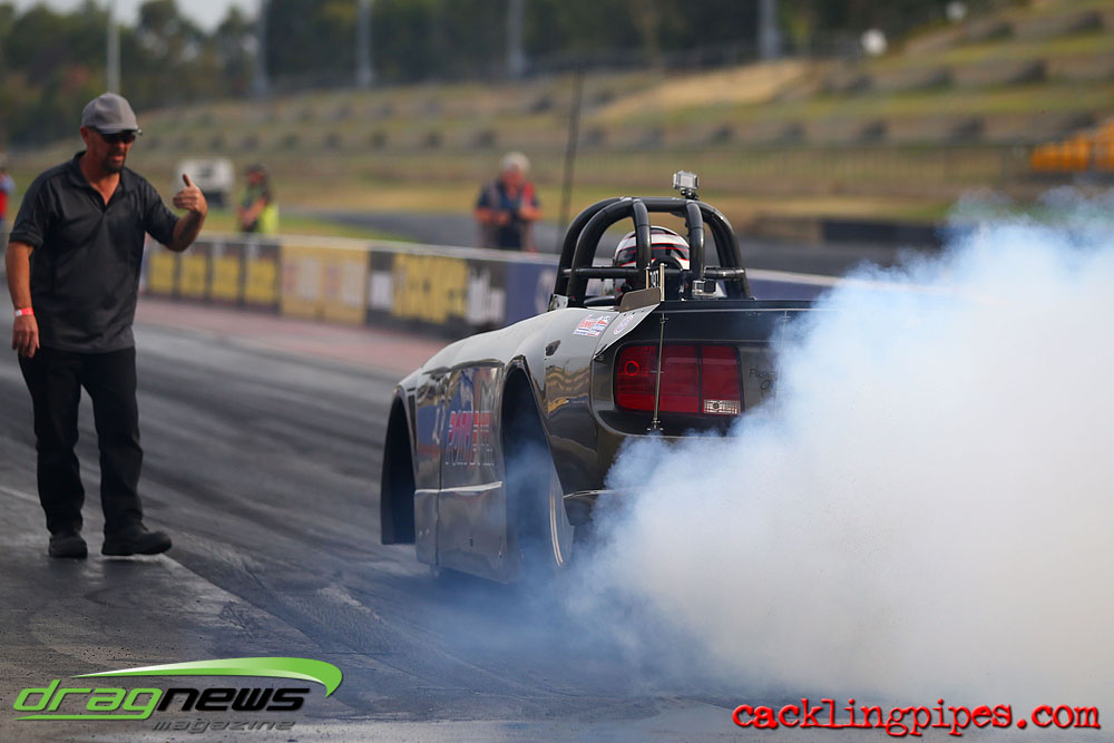 Birthday boy John Somoracz was given a present from his Cortina with a perfect 9.900 qualifying run in Super Gas. New ANDRA Super Gas National Champion Darryl Stephen ended the party putting JB on the trailer in round one in a double breakout race. Stephen went on to keep his perfect record of final appearances this year intact, to then light up the win light against opponent Naomi Lightowler in a race where both racers went well under the index, 9.87 to a 9.82.