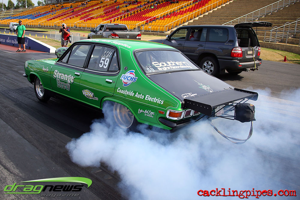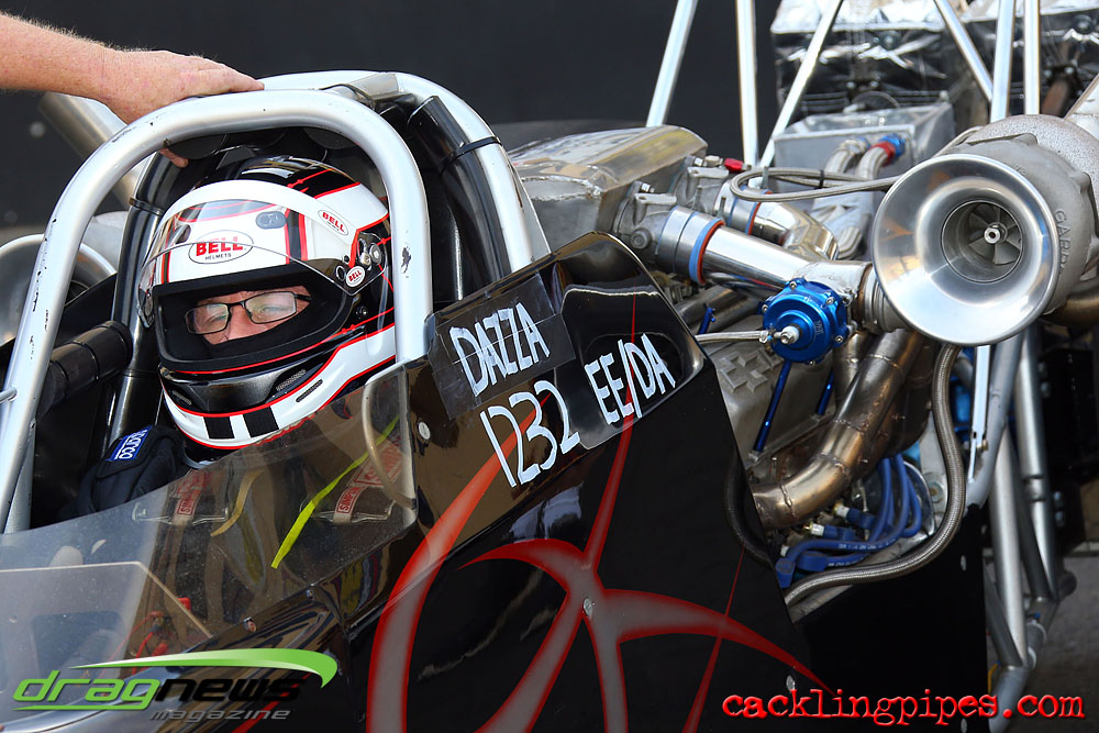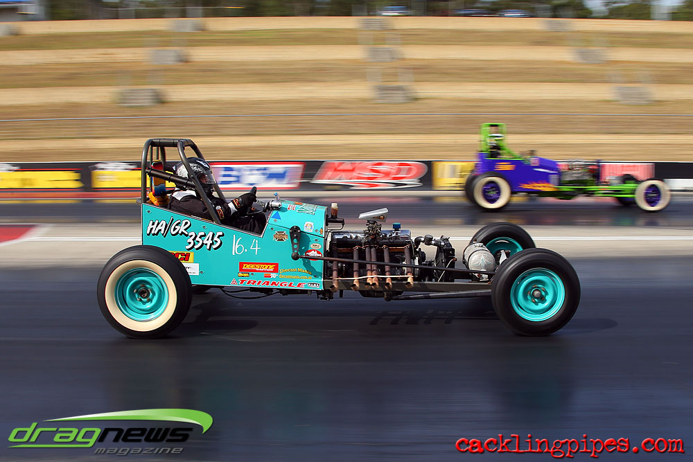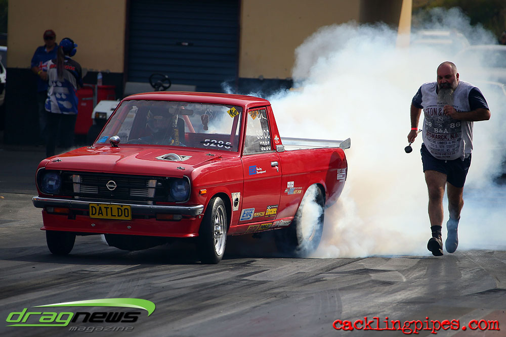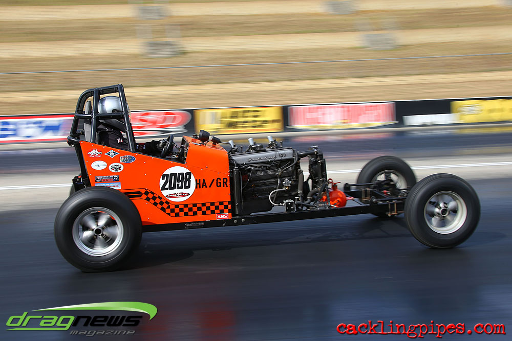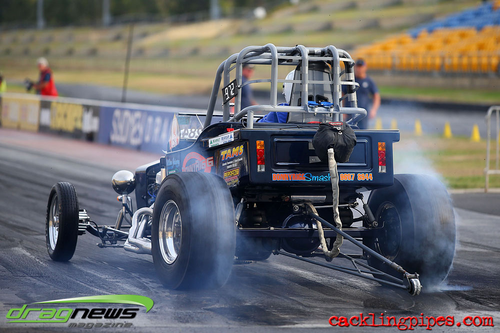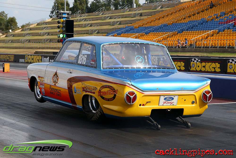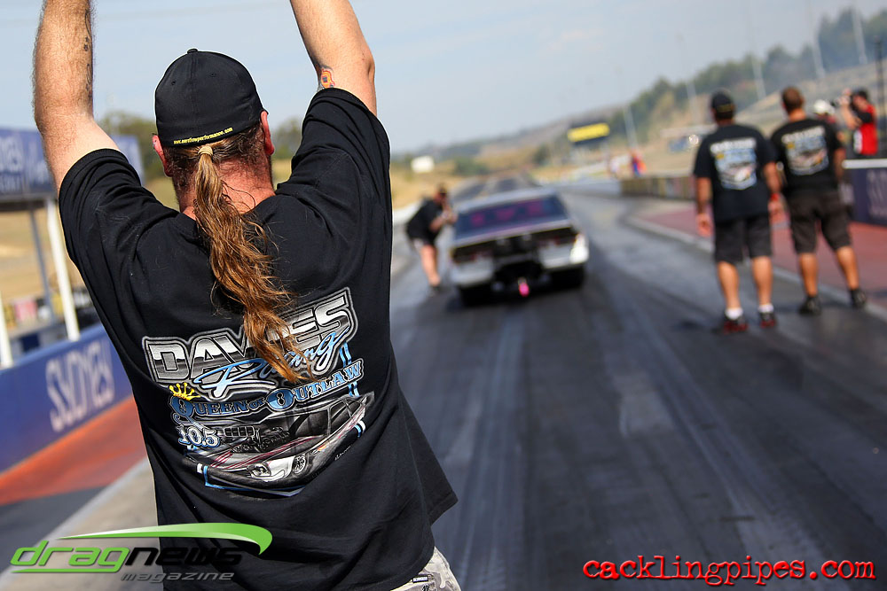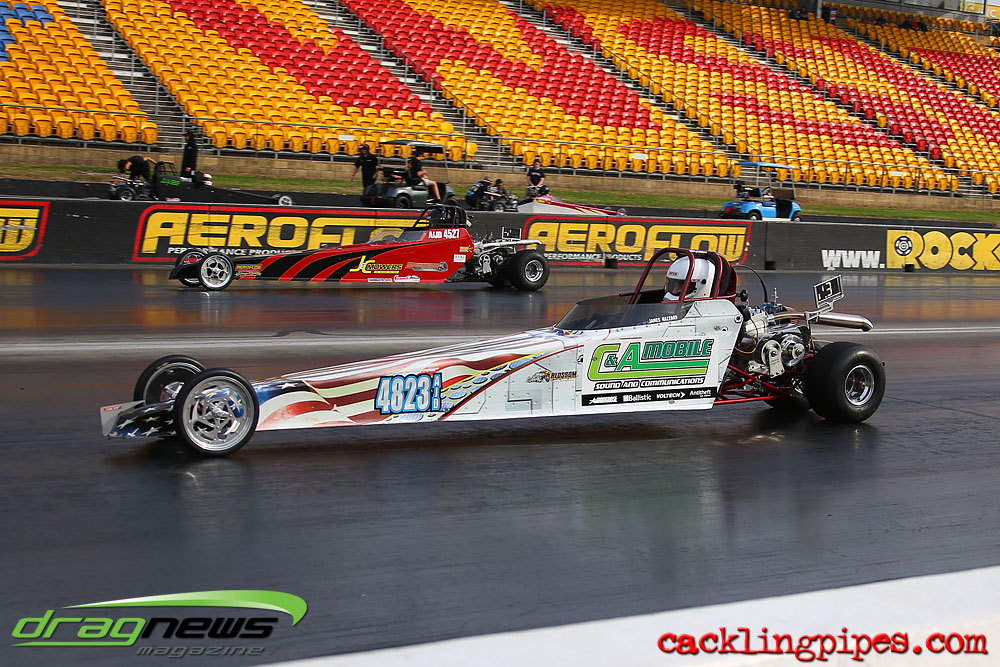 Birthday boy John Somoracz was given a present from his Cortina with a perfect 9.900 qualifying run in Super Gas. New ANDRA Super Gas National Champion Darryl Stephen ended the party putting JB on the trailer in round one in a double breakout race. Stephen went on to keep his perfect record of final appearances this year intact, to then light up the win light against opponent Naomi Lightowler in a race where both racers went well under the index, 9.87 to a 9.82.