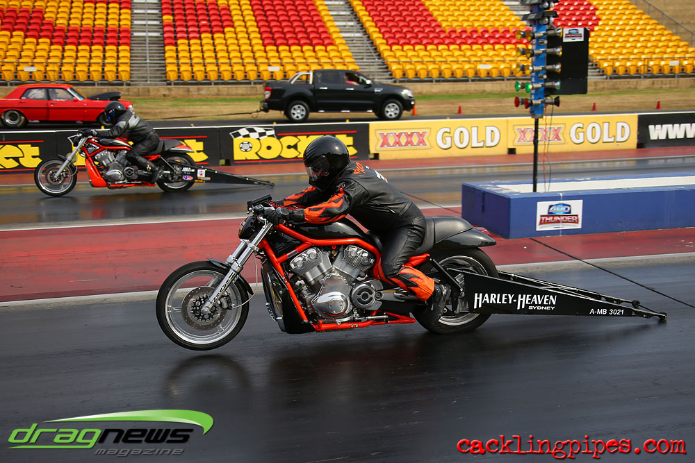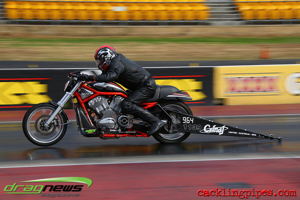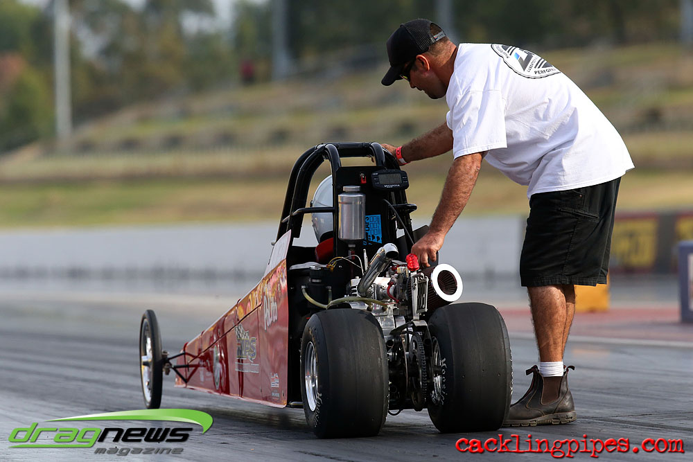 Matthew Hunt has created a little points buffer in Modified Bike with a semi final result after winning the first two rounds of the championship. Peter Strudwick red lit his chances away on his Destroyer in the final against Robert Simmonds, the Simmonator is now Hunt’s nearest rival 30 points off the pace and setting up yet another championship dual between the two nemisis’.