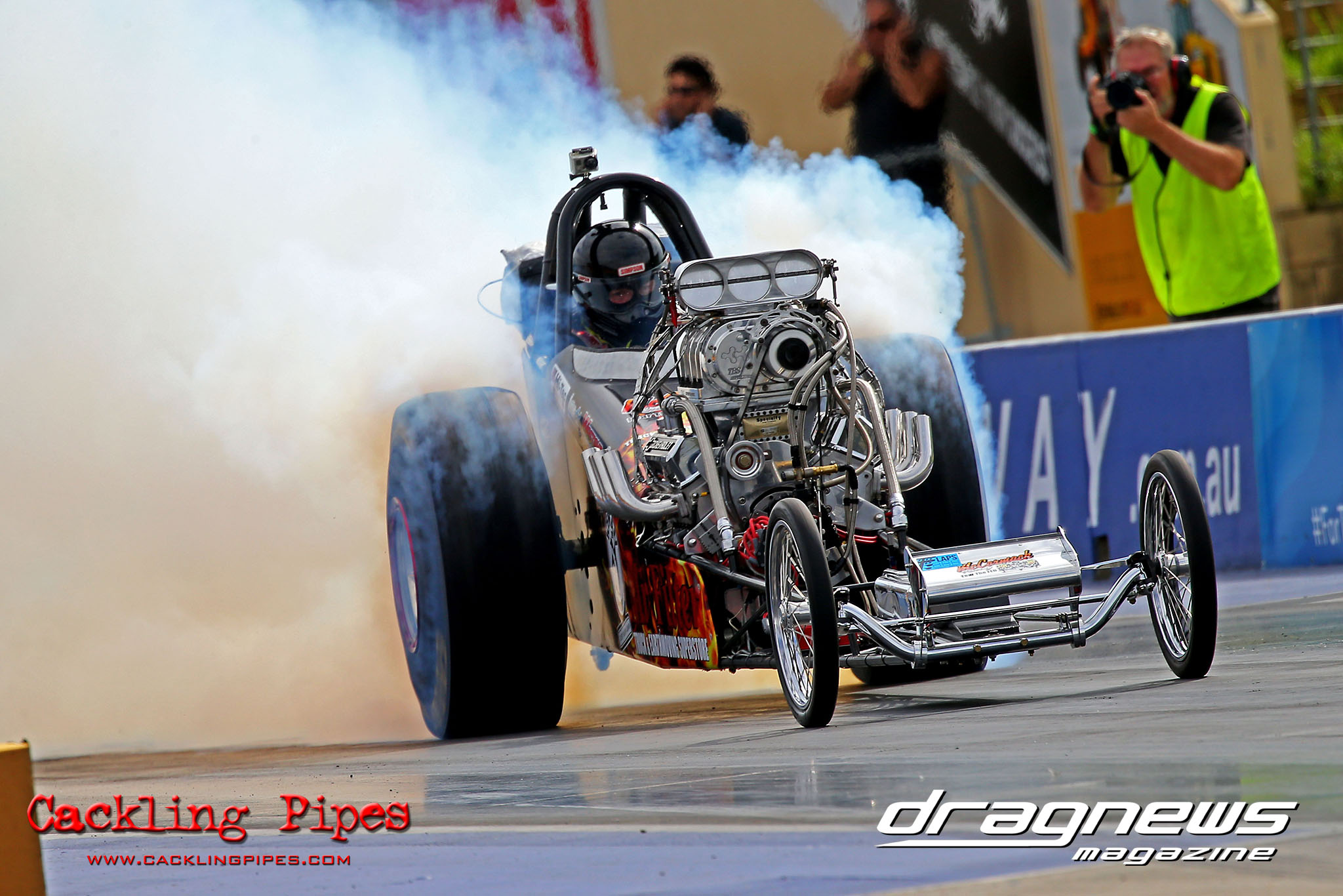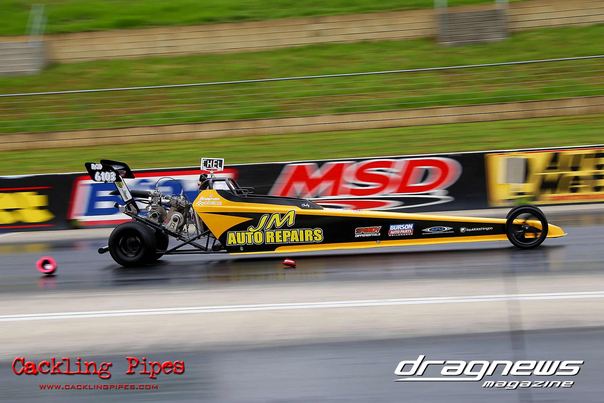 Junior Dragster was a battle of the junior titans Joel Burns and Brad Bishop who worked their way to the final in a large field of racers, that had plenty of new faces which was great to see. Burns had Bishop at the tree 0.32 to a .073 but failed to rein in the win with a 8.043 on a 7.98 to Bishop’s winning 8.041 on a 8.03.