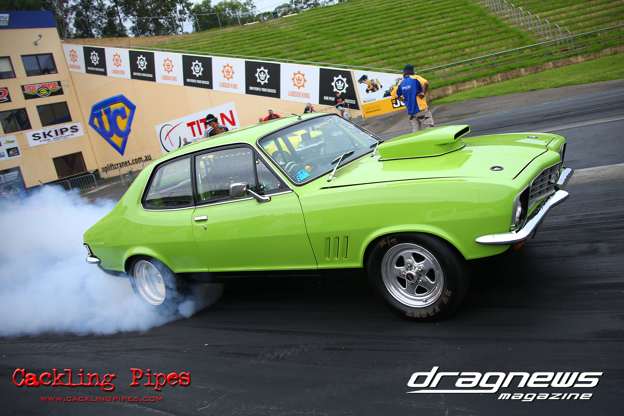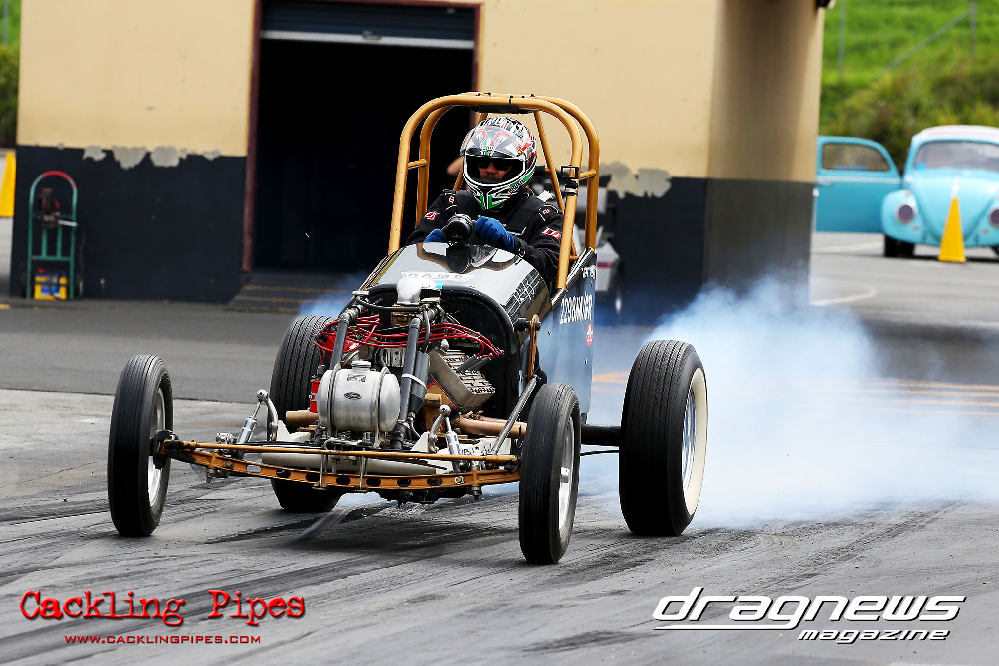 Danny Stadelmaier’s far out Street Fighter Falcon powered by “bananas” had morphed into a equally far out Commodore over the off season, but what had not changed was the defending champion’s racing prowess, chalking up the win in the final over Guy Greenland’s Commodore wagon.