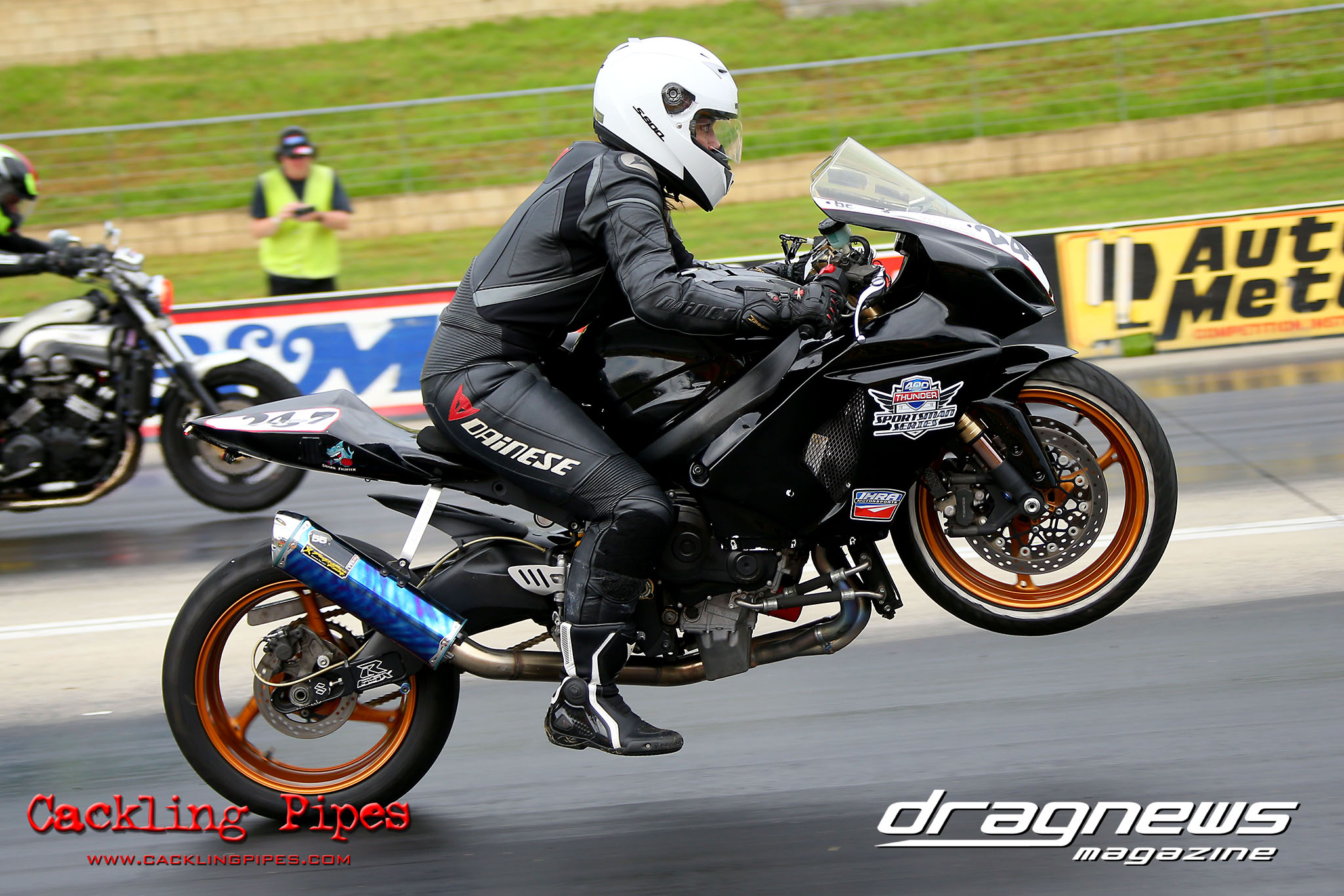 For Street Bike Bobbie-Jo Simmonds would go one better than husband Robert in Modified Bike, collecting her first winner’s trophy when opponent Stefan Stivala picked a cherry off the tree.