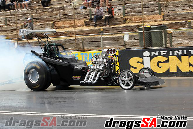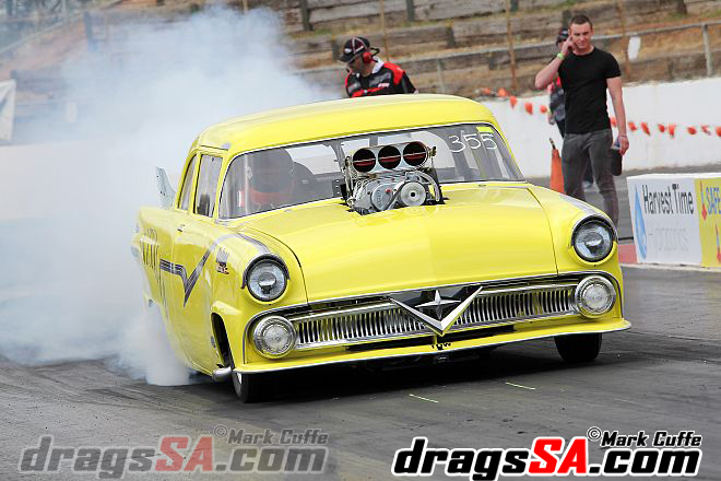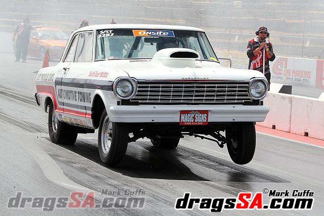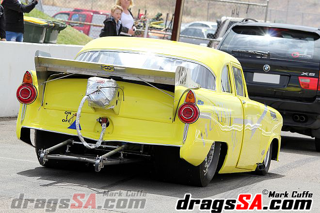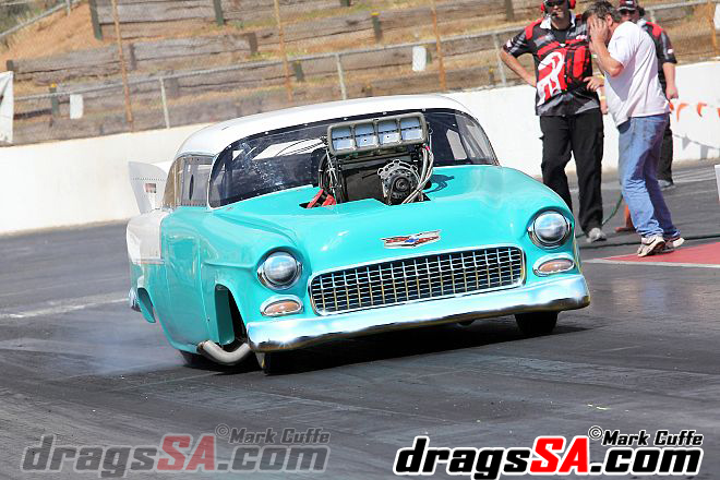 Roger and Justin Size debuted their Doorslammer “HillBilly Express” the team have been meticulously putting together the ex David Coop ’55 Chevy following its fiery end in the old guise. The team started their licensing procedures with Justin at the wheel.