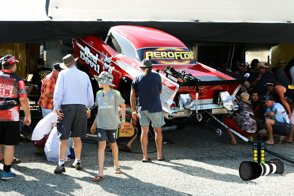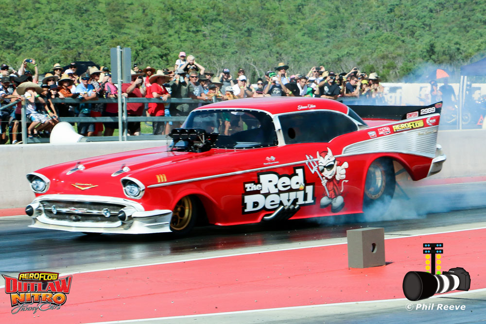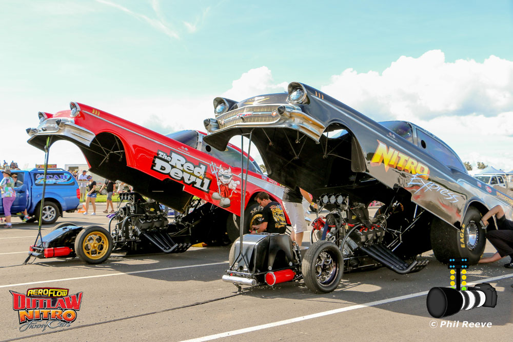 In front of a massive crowd in-excess of 5000 fans, the brand new picturesque facility hosted a teaser of what is to come later in the year with the appearance of Aeroflow Outlaw Nitro Funny Cars “Red Devil” and “Nitro Express”.