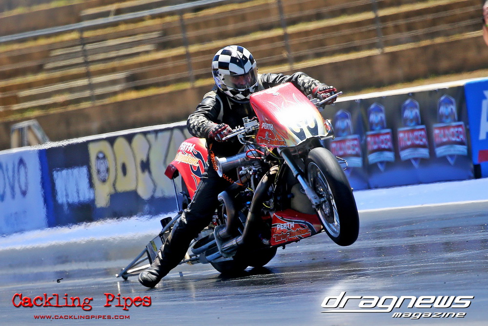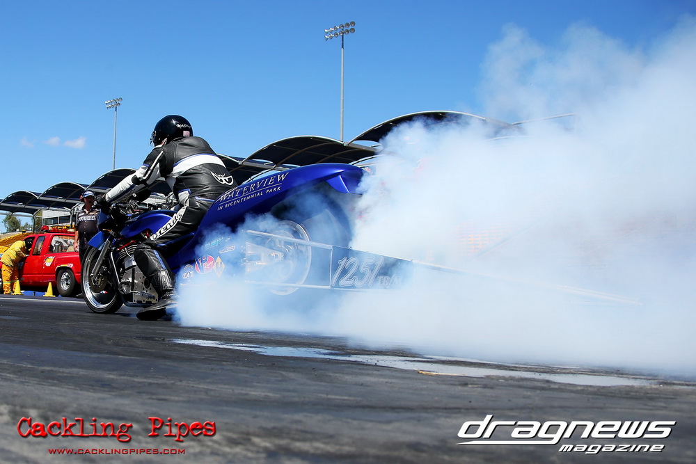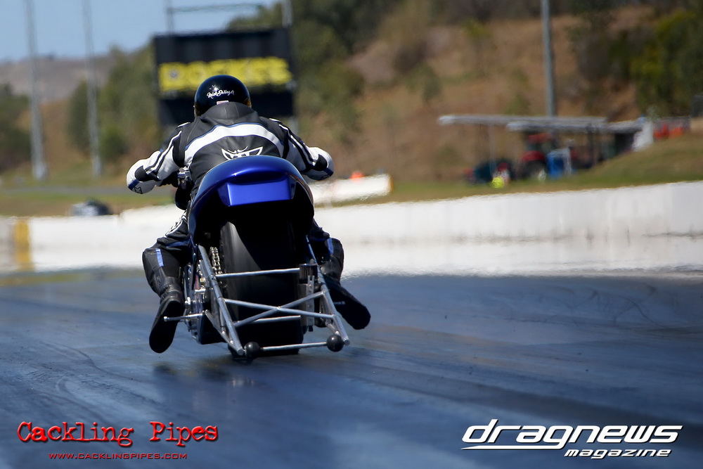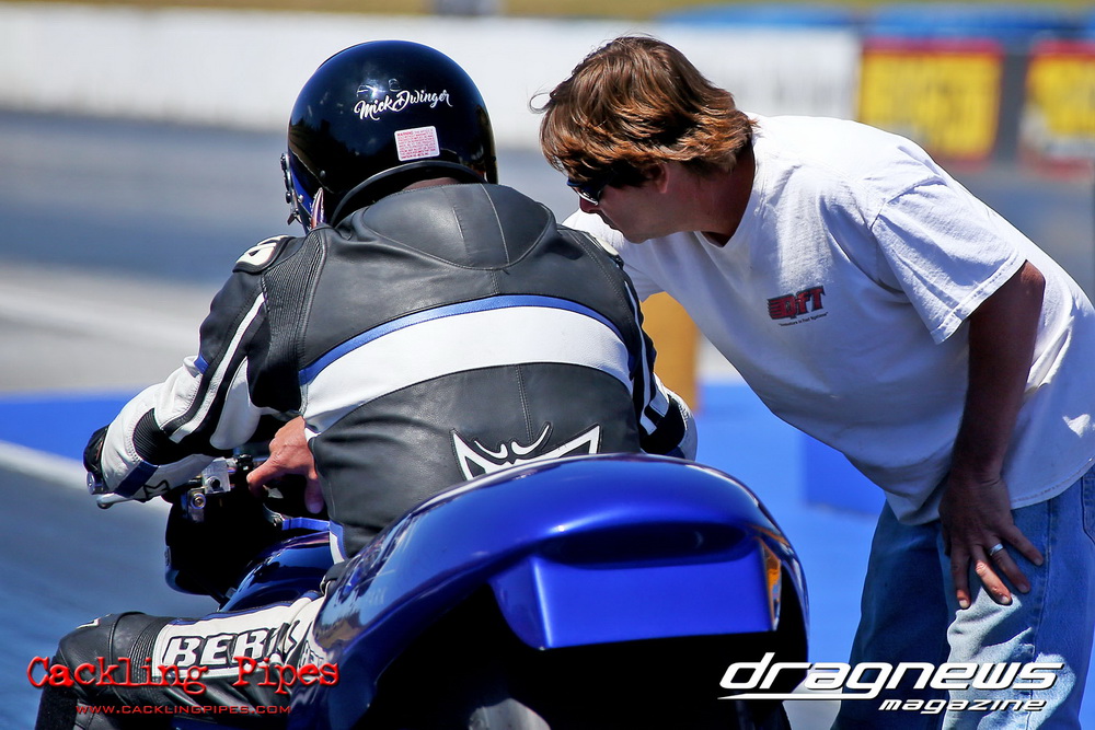 Michael Dwinger is aiming to license his nitrous sucking Top Bike and a few solid mid seven passes have the team going in the right direction as Dwinger still feels out the new bike.