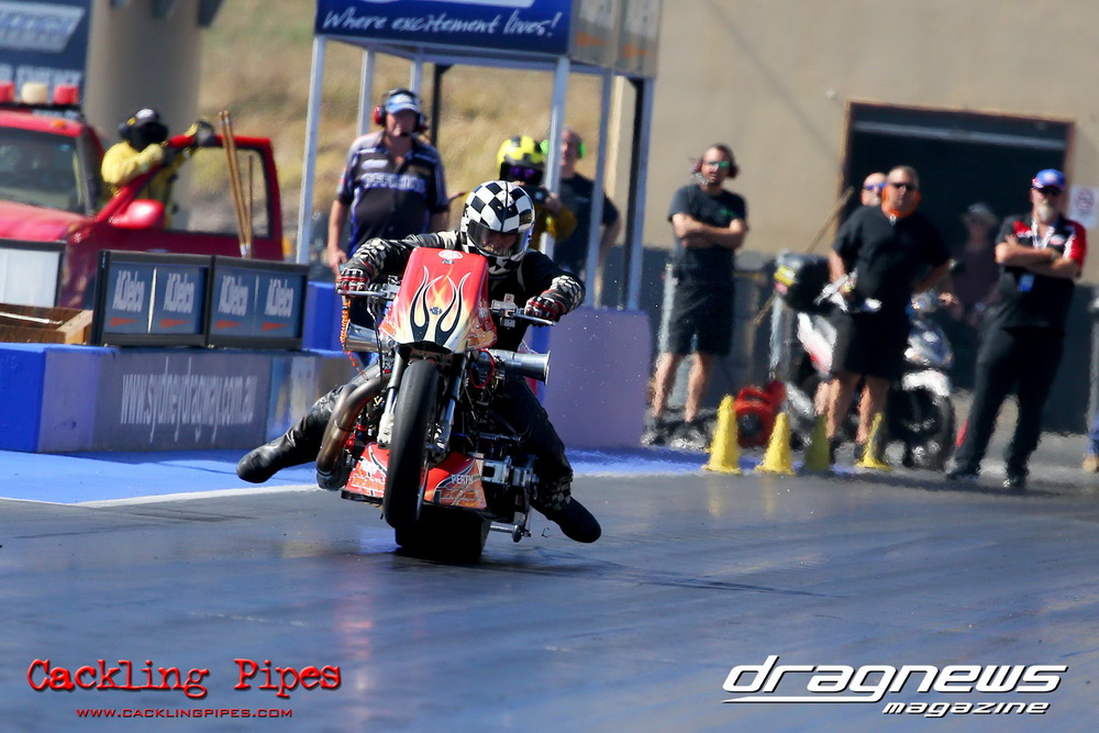 With expert tuning by Frank Marchese from Dandy Engines, the Pro Radial machine marched to a string of 7.0s the quickest at 7.04 all on a baking hot track with radial tyres – look out when it gets cooler.