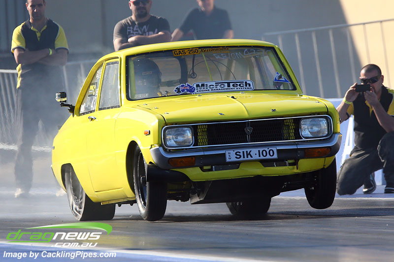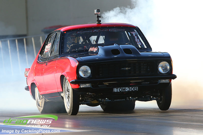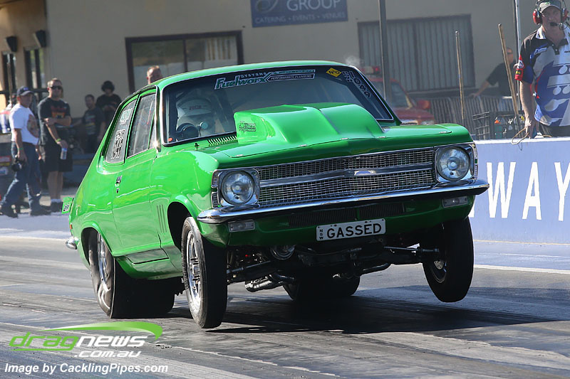 7.55 at 181mph for Michael McGrath’s nitrous Torana.