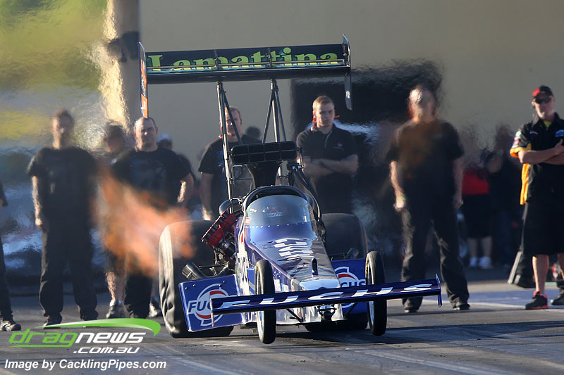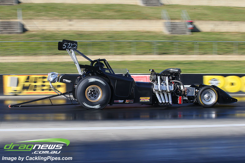 Sam Fenech went quicker again punching out a 6.32 from the blown Outlaw 10.5 Grand Am, with a pedal mind you.
