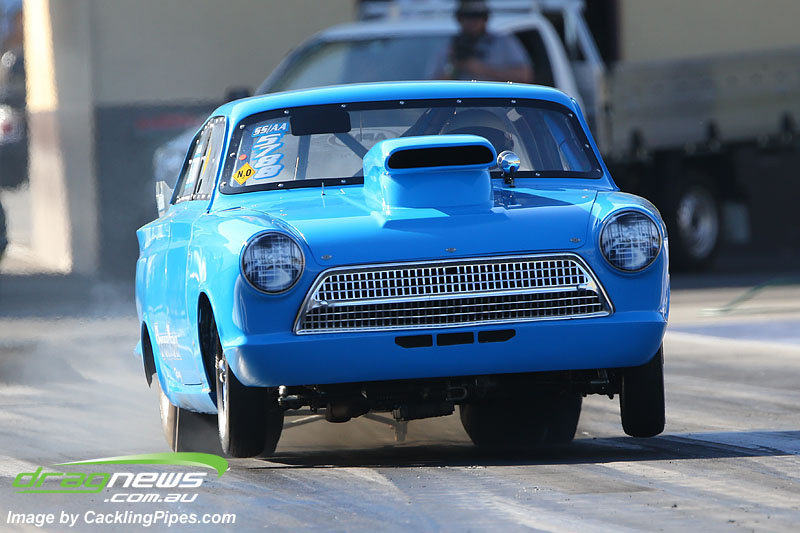 8.85 at 146mph for another returning racer in Brett Oldfield and his chopped nitrous Cortina.