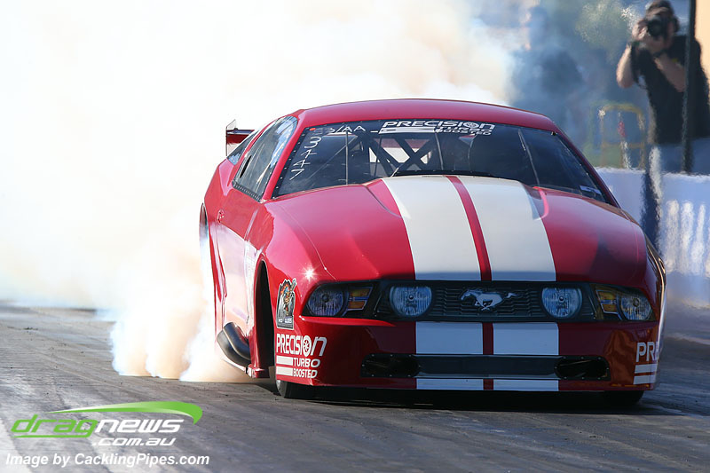 Likewise Mick Duggan is getting his Nova solidly to half track now as the confidence grows. Though suffered another big blower pop on his final run during the burnout, starting a small methanol fire that was quickly extinguished by the fire crew.