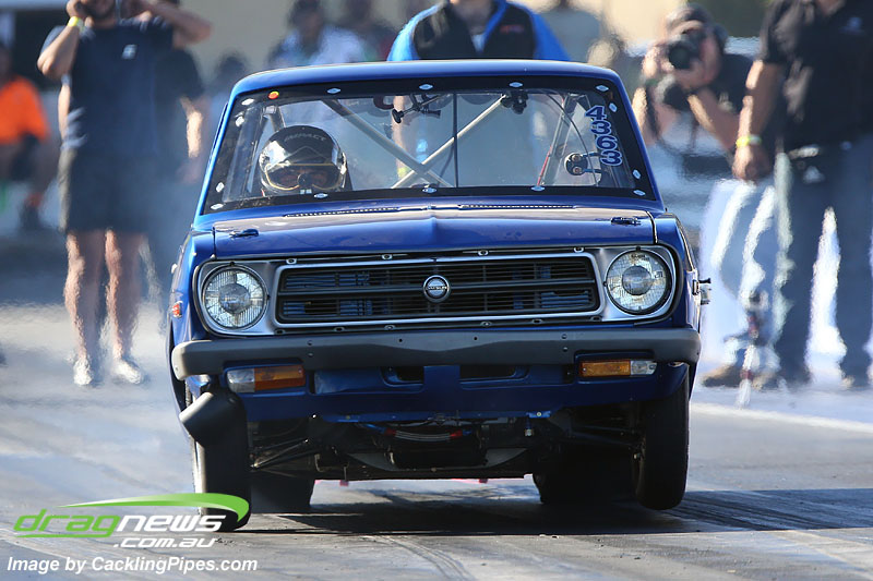 Dion Amato achieved his goal of a seven second pass, the six cylinder Barra machine stopped the clocks with a 7.97 at 197mph.