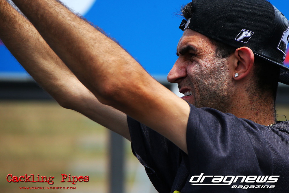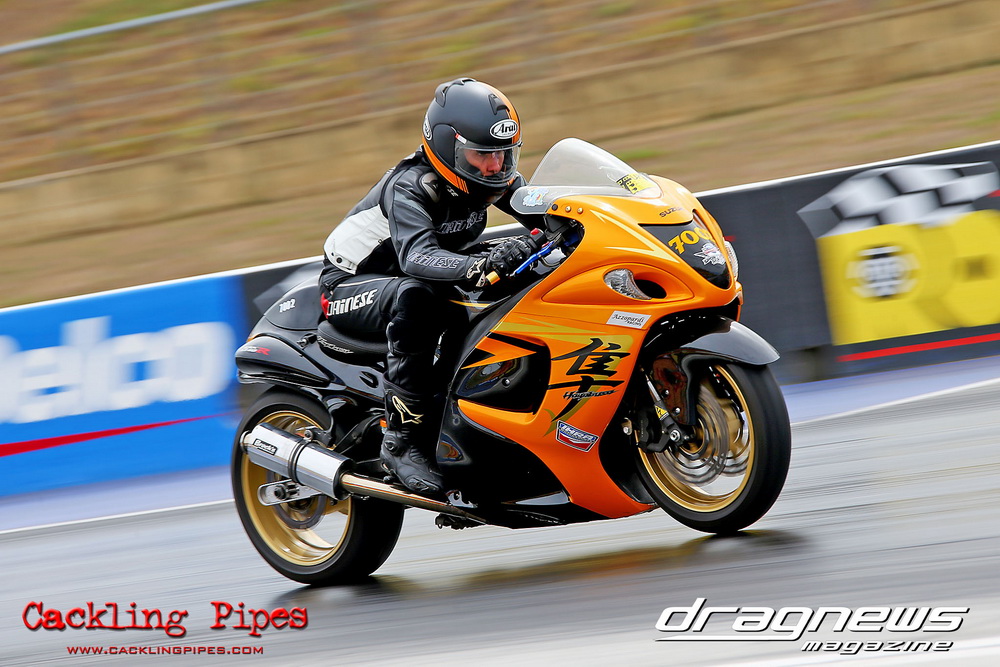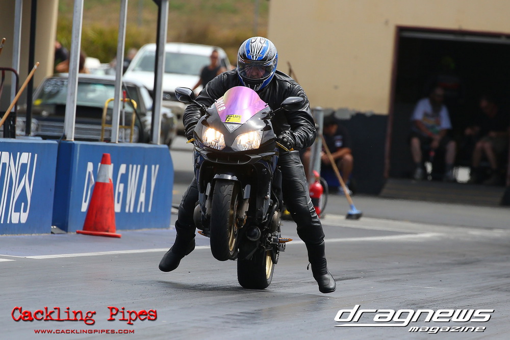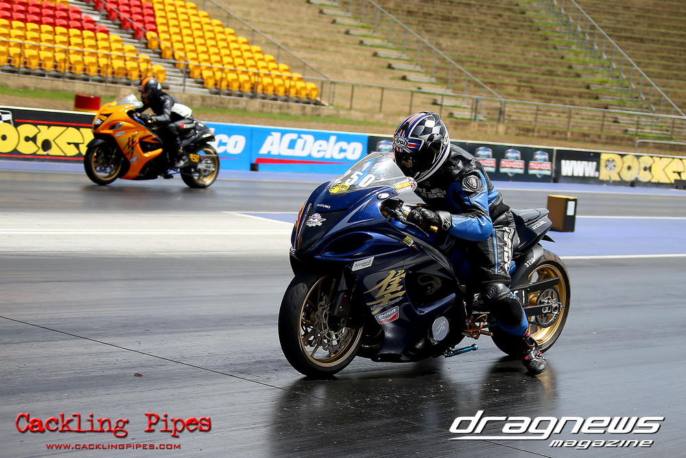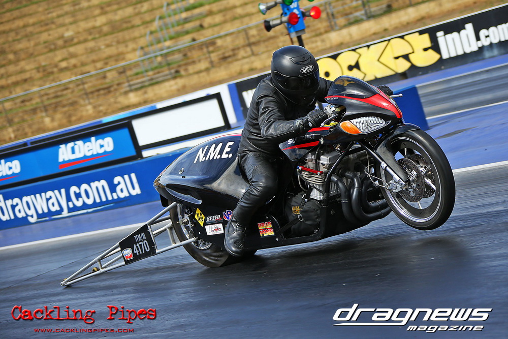 Mark Drew was in town early with the colourful Fin Jaska Salakari to test the new fuel system on the Australia’s quickest nitro Harley.