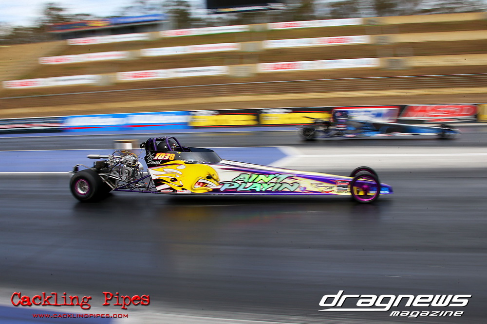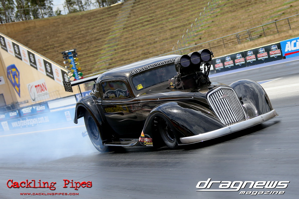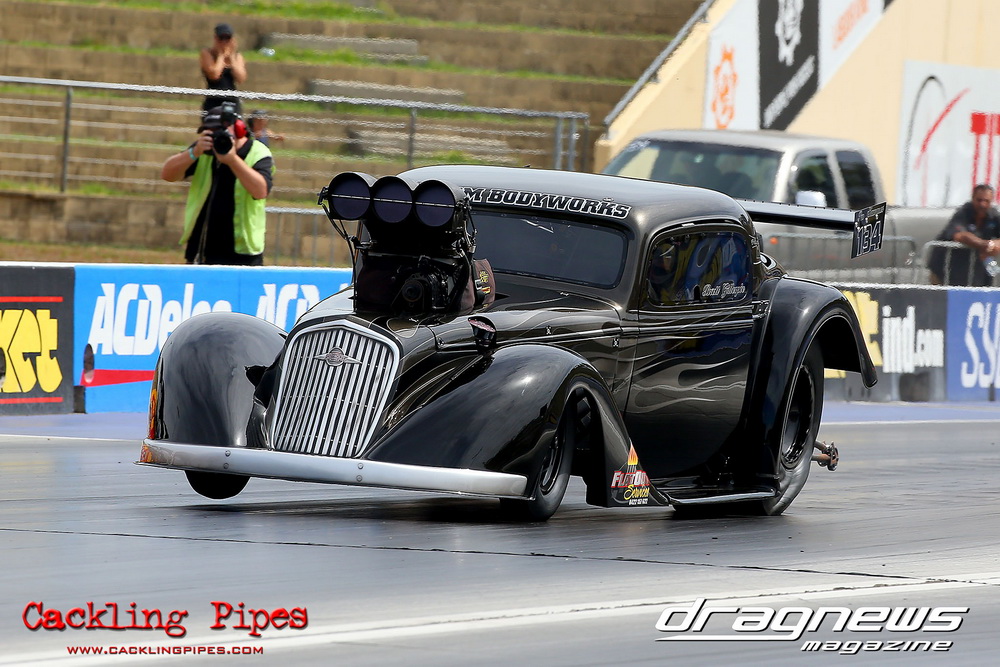 The long awaited return of Brett Gillespie’s rebuilt 1934 Chev Proslammer happened. The chassis has been completely rebuilt and stretched to a much more sane length for the amount of power it will be receiving by John Willard at Flatout Services.