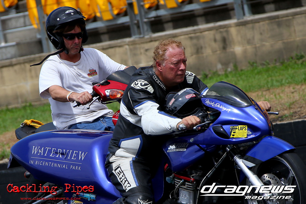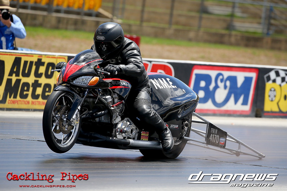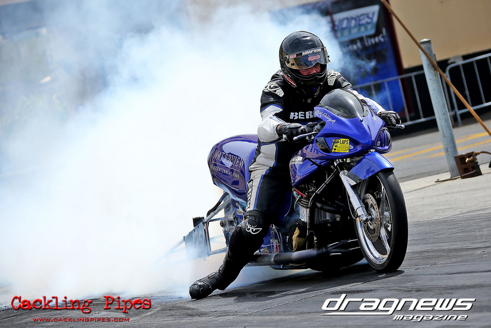 Also testing were the nitrous Top Bikes of Rod Barchet and Michael Dwinger. The Barchet team looked satisfied with a 7.08 best in the heat that looked very easy.